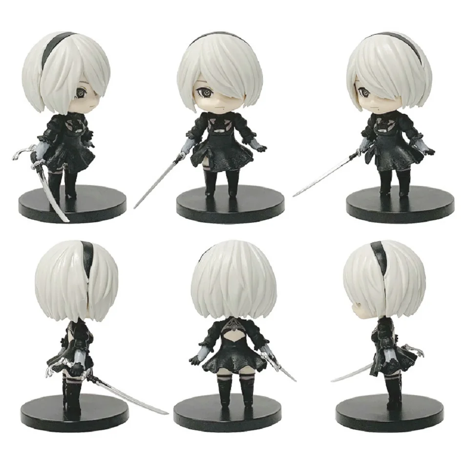 6pcs Q-version Anime Nier Mechanical Era Yurha 2B Miss Sister Sword Star Linkage 9S A2 Handmade Blind Box Doll Desktop Ornament