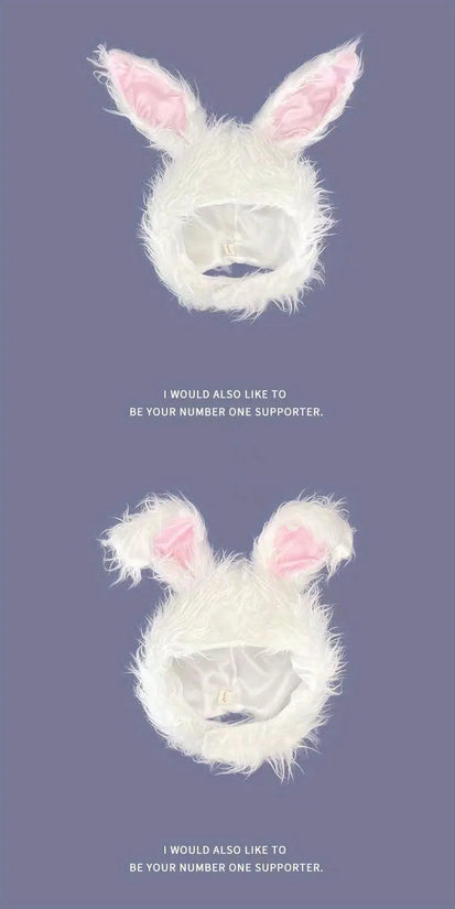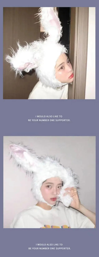 Net Red TikTok Little Red Book Cute Plush Rabbit Long Ear Sleeve Hat - Female Ear Hat - Dress Up Props - Cotton Material