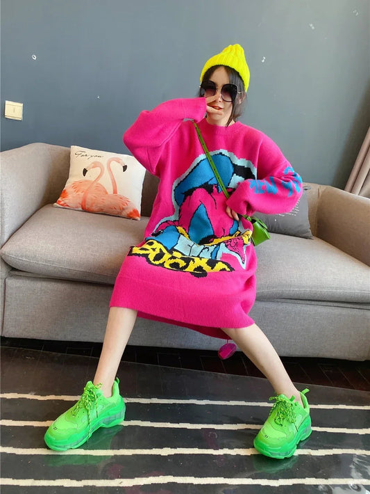 Vintage Sweaters Women Pullover Winter Striped Jumpers Korean Style Loose Pullover Knitwear Casual Loose Sweater Pull Femme