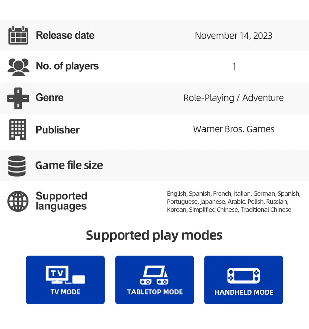Supported Play Modes: TV mode,Tabletop Mode,Handheld Mode