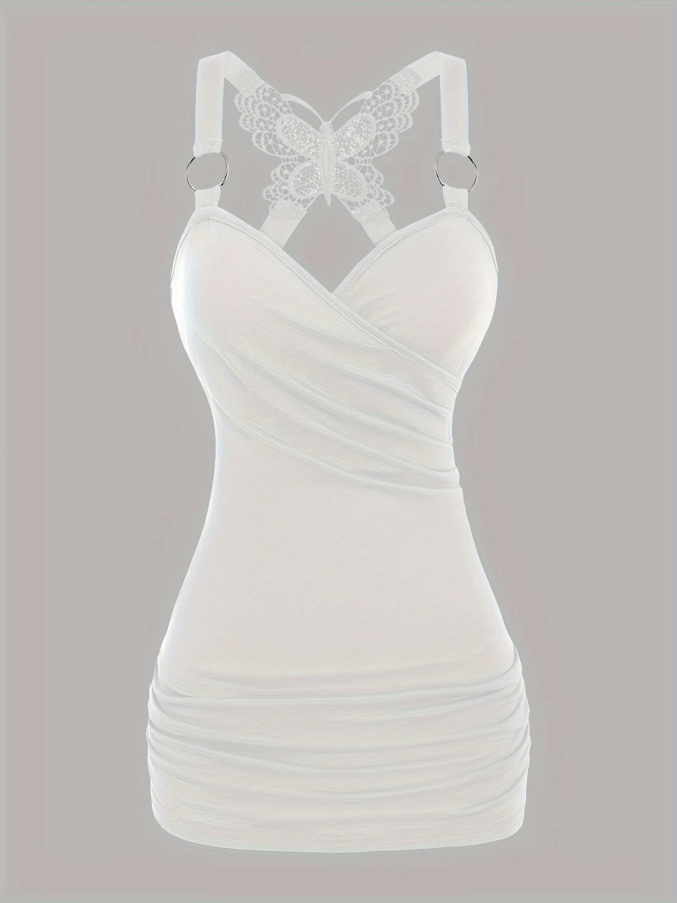 New European and American women's pleated suspenders butterfly lace cross vest in spring and summer of 2024