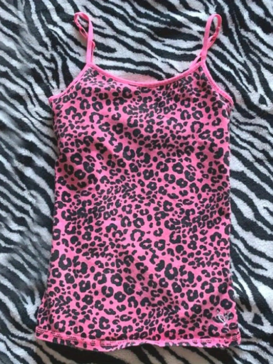 Leopard Print Cami Top, Casual Crew Neck Sleeveless Slim Spaghetti Strap Top For Spring & Summer, Women's Clothing
