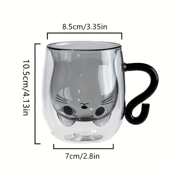 1 pc, cute kawaii cat coffee mug, insulated double wall glass, multi-purpose, reusable, perfect birthday/Christmas gift