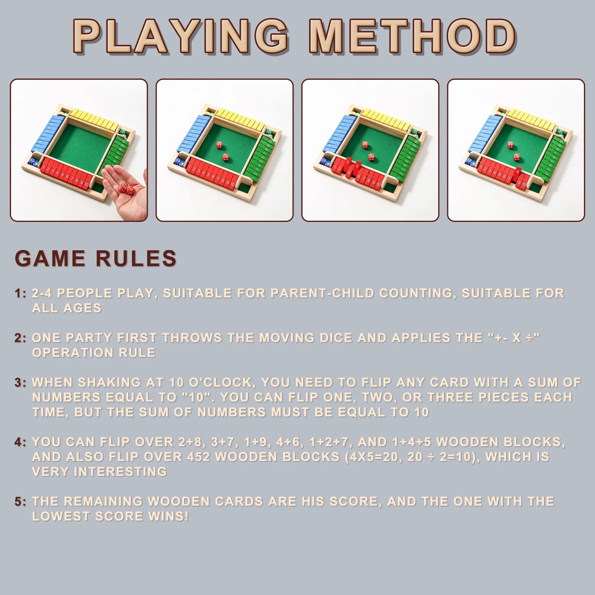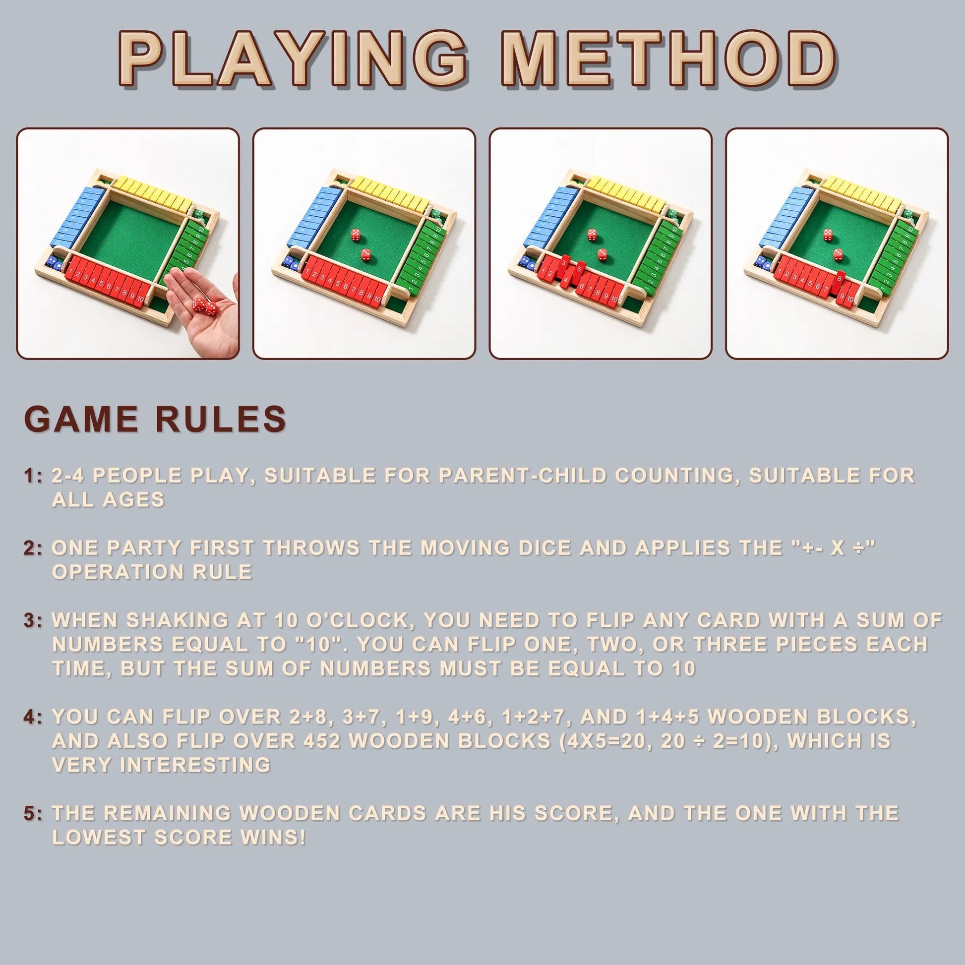AIUAZA 1 Set Drinking Games, Wooden Board Game For 1-4 Players, Classic Family Game With 8pcs Dices, gaming gift