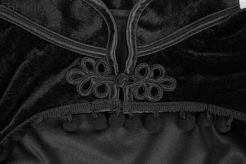 Medieval Steampunk Jacket Black Tassel Stand Collar Short Top Women Gothic Coat Navel-exposed Long Sleeve Retro Slim Fit Coats SS69