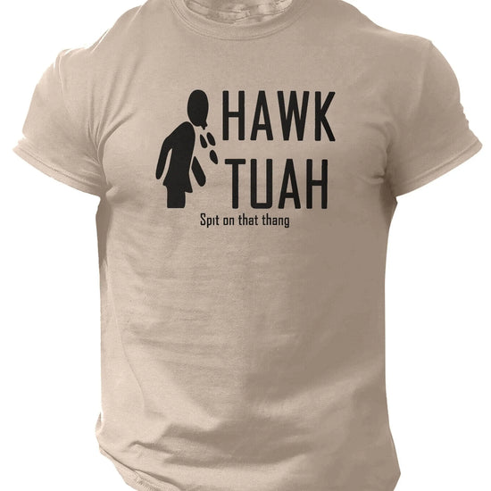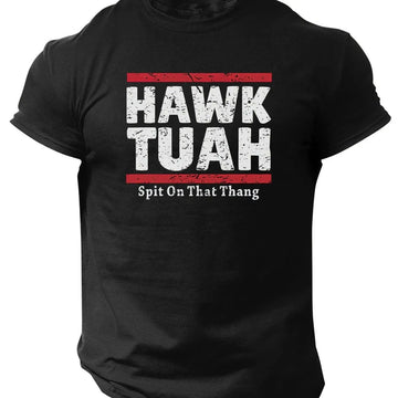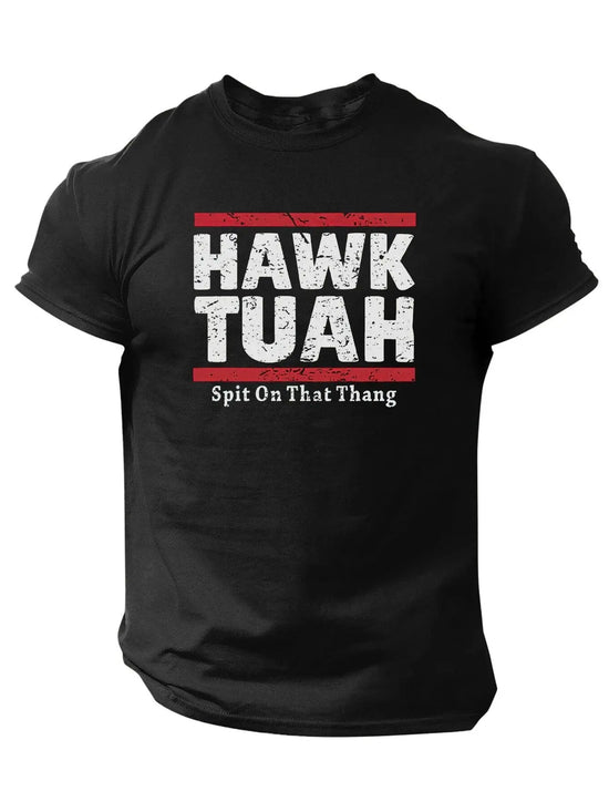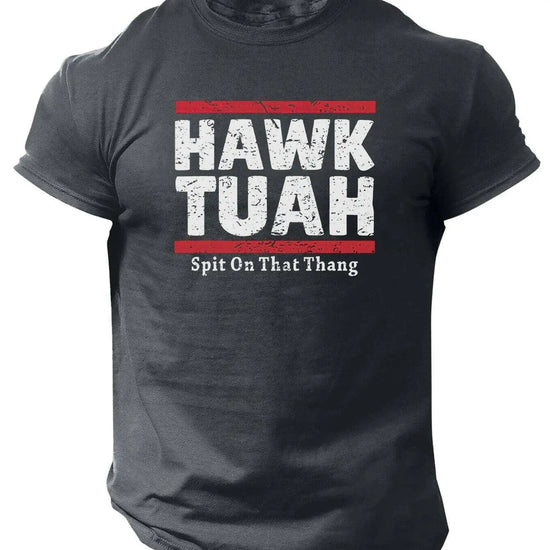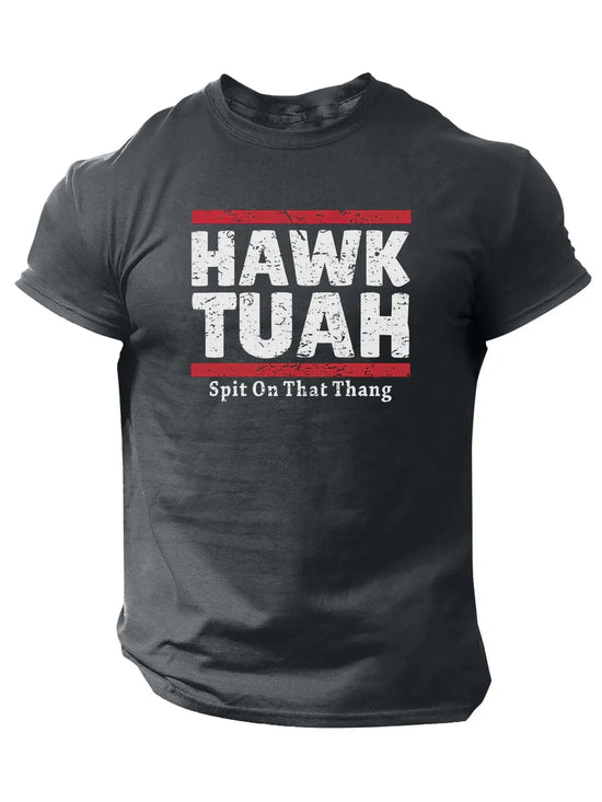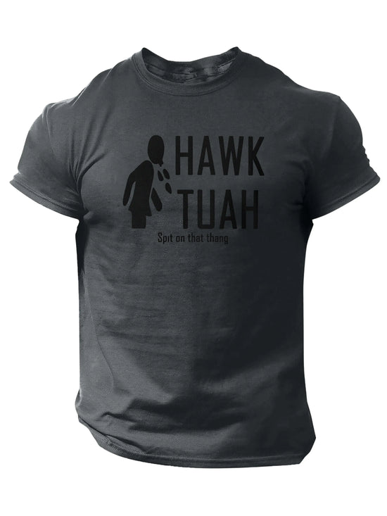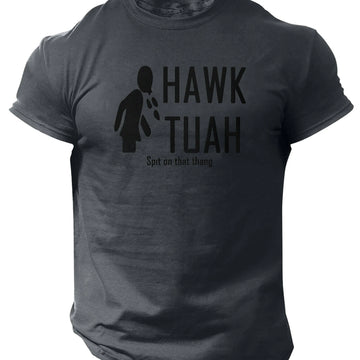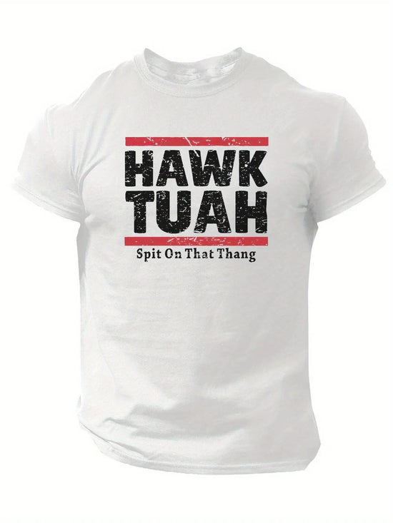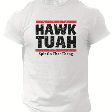 Slogans Hawk Tuah Print Men's Crew Neck Short Sleeve T-shirt, Summer Casual Versatile Top For Outdoor Fitness & Daily - SS69