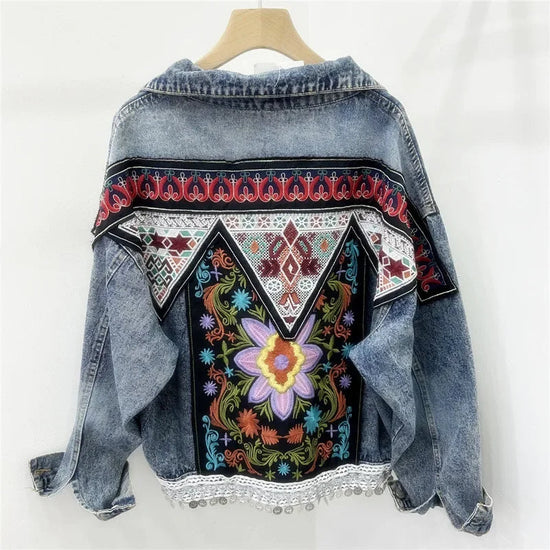 Streetwear Fashion Embroidery Sequins Denim Jacket Women Cowboy Outerwear Autumn Vintage Blue Big Pocket Jeans Jackets Female
