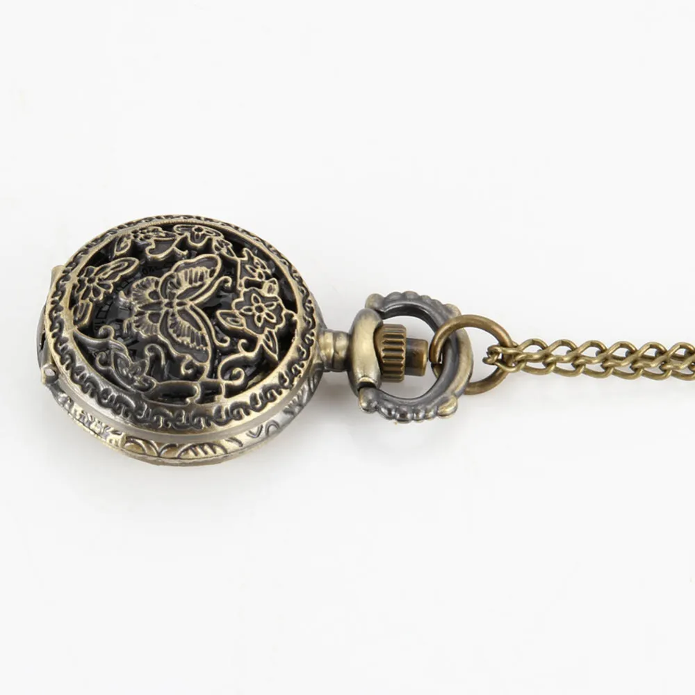 Fashion Women Quartz Pocket Watch Alloy Hollow Out Butterflies Vintage Sweater Chain Necklace Pendant Clock Gifts