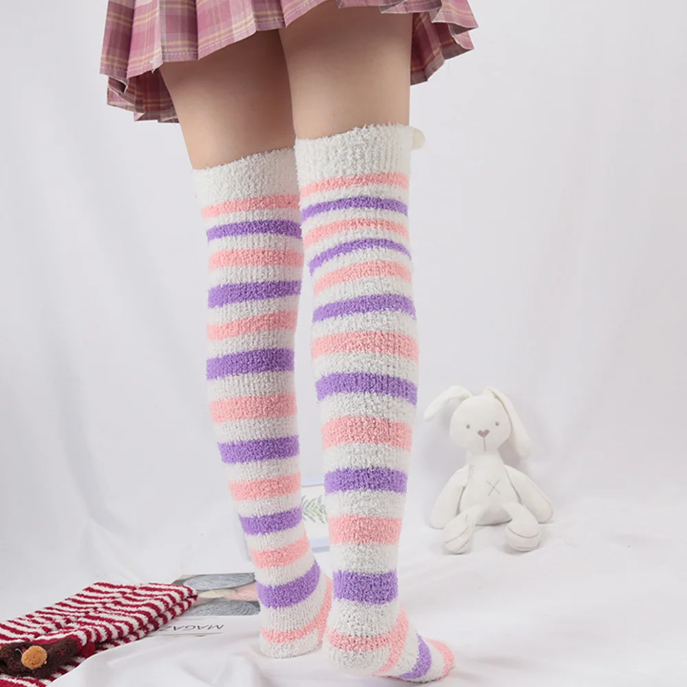 Calzini al ginocchio da modellazione animale per ragazze giapponesi, a righe, carini, a compressione, autunnali, invernali, caldi, kawaii, comodi, lunghi, alti fino alla coscia