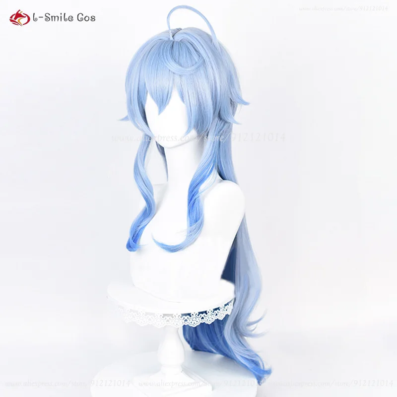 Nuova parrucca cosplay Ganyu Ganyu 90 cm lunga parrucca sfumata blu con frangia rifinita resistente al calore capelli sintetici parrucche carine + cuffia per parrucca