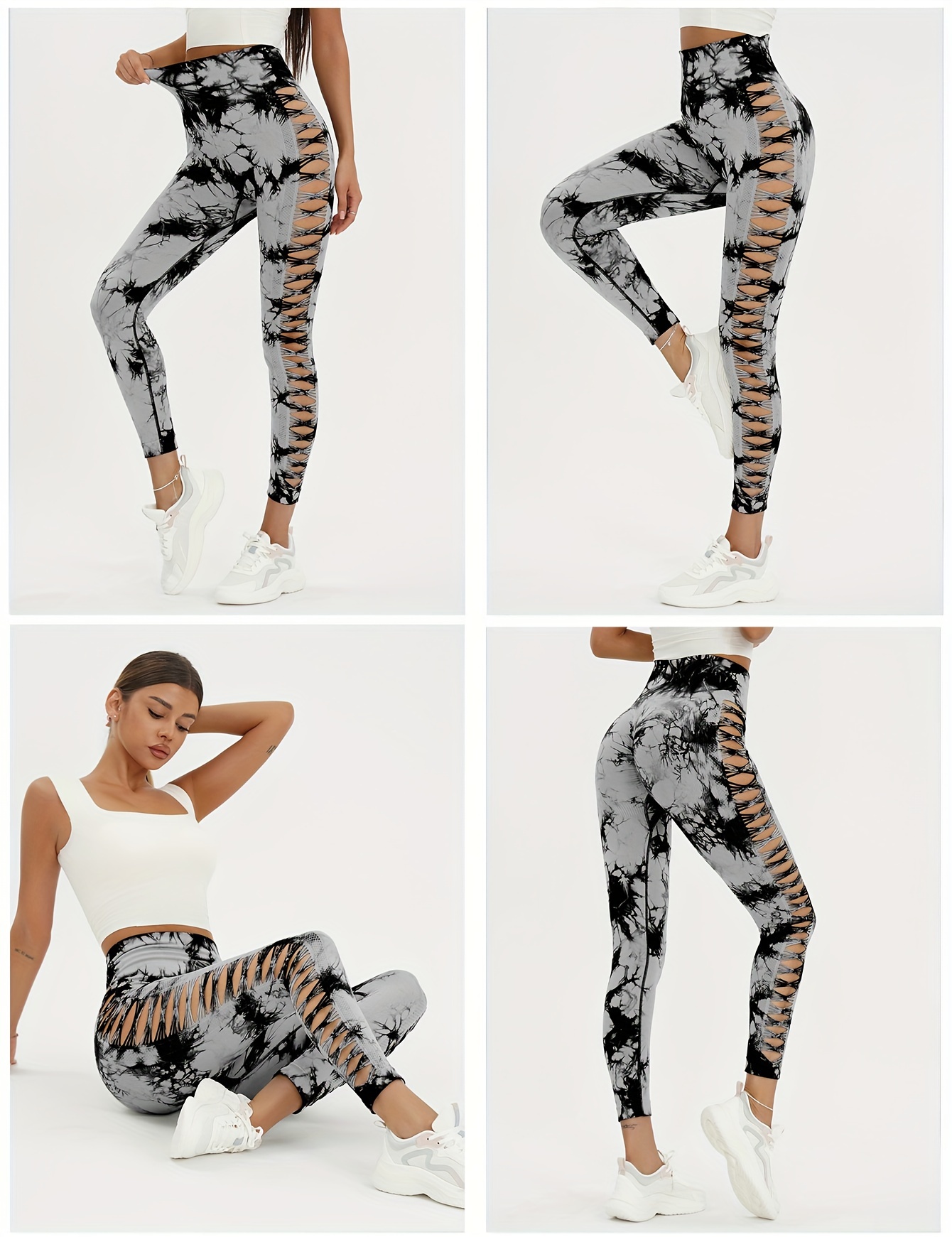 Seamless Lady Tie-Dye Yoga Pants, Side Hollow Butt Lift Workout Fitness Tights, Jogging Sports Leggings, Gym Clothing