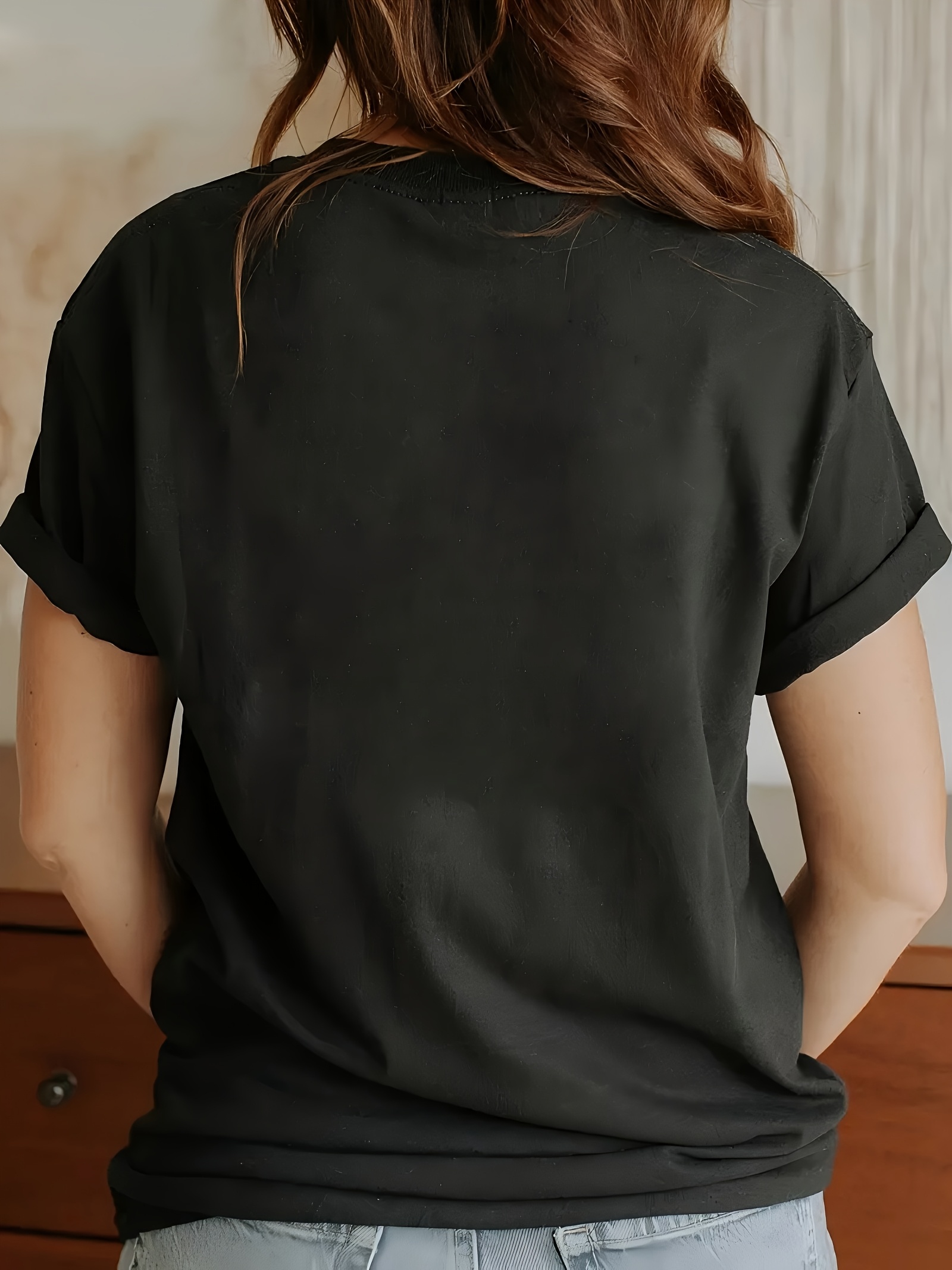 Women's Anime Cat Girl Graphic T-Shirt - Black Polyester, Short Sleeve Crew Neck, Casual Summer & Spring Top, Machine Washable