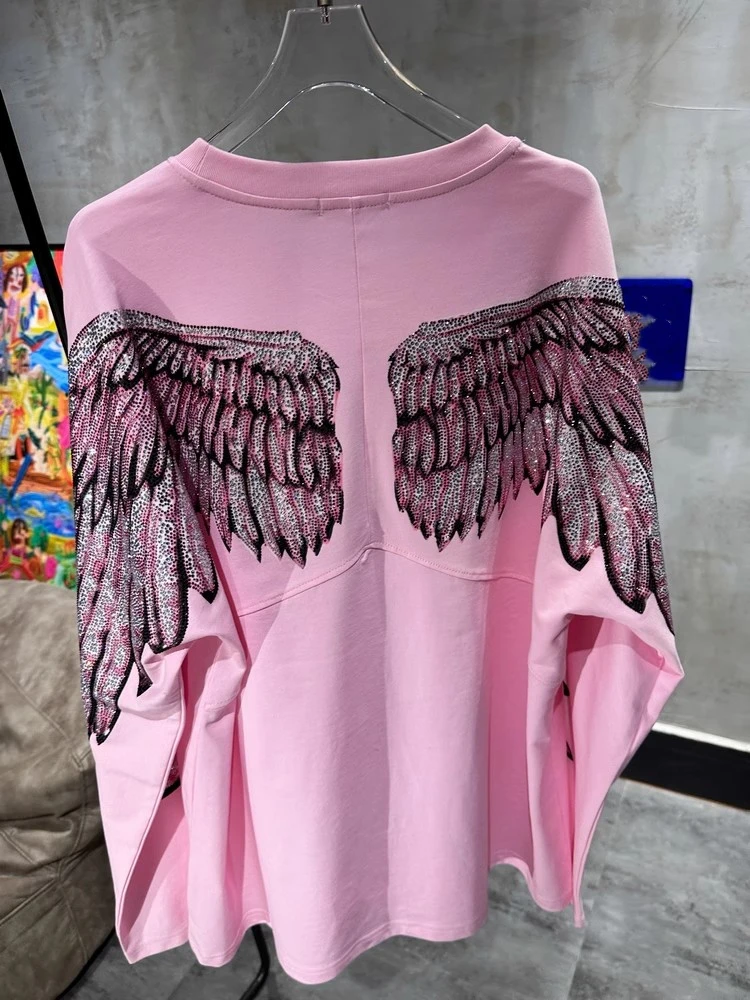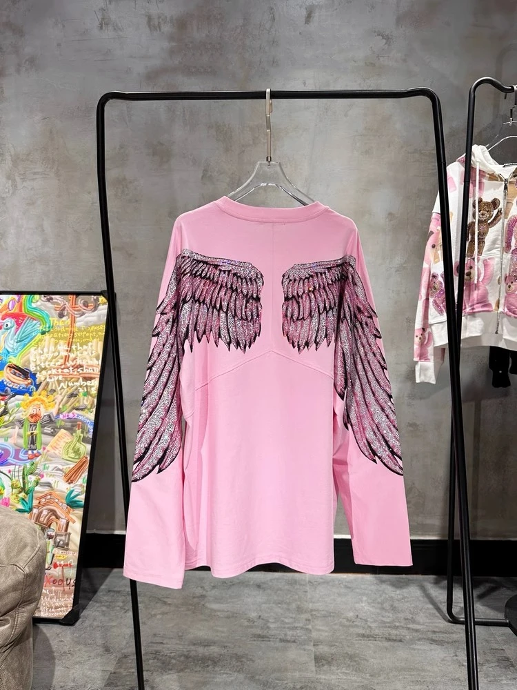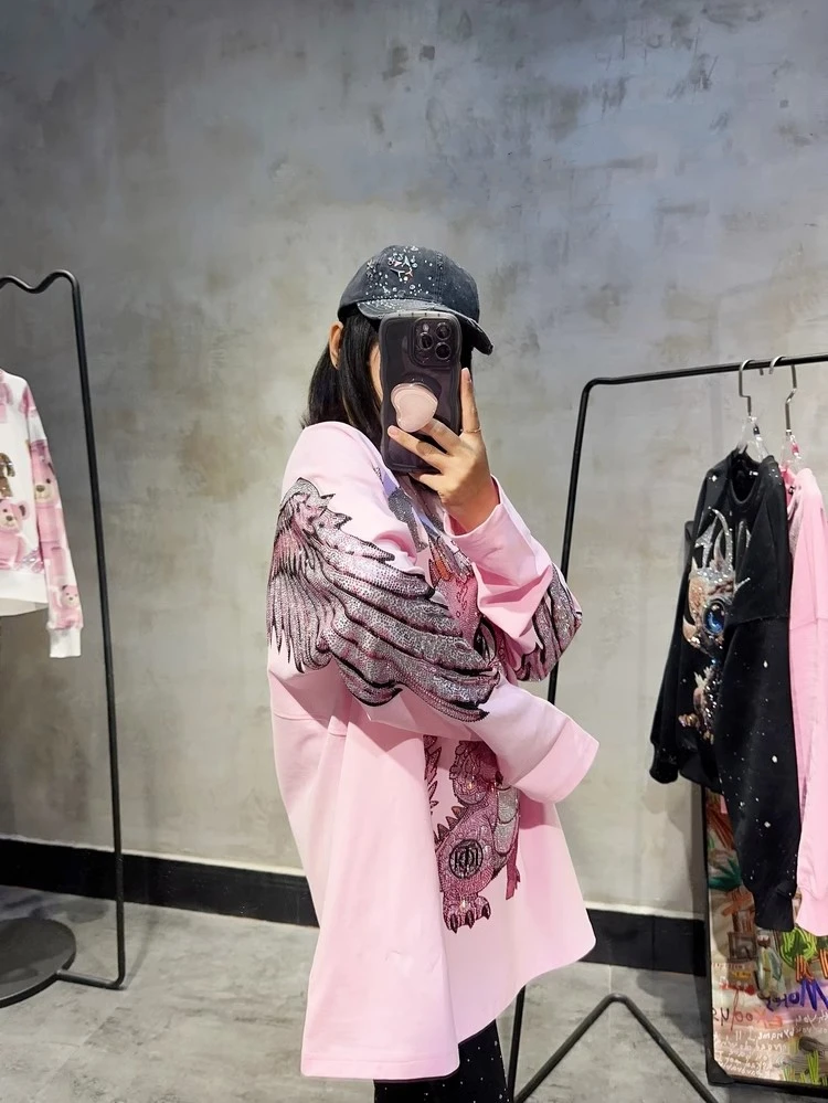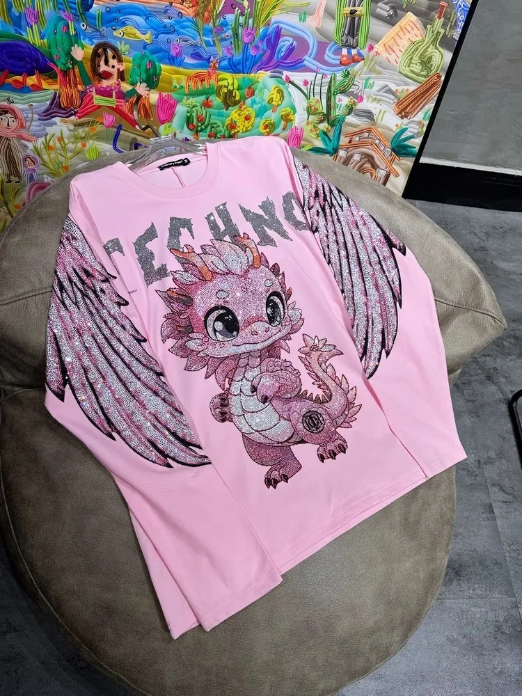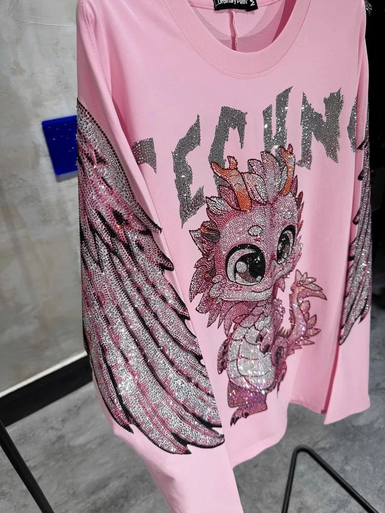 Cartoon Hot Diamonds Dinosaurs Plus Size Tops Y2K Streetwear Sweet Cute Fashion Large Size Tops Spring New High Street T-shirts
