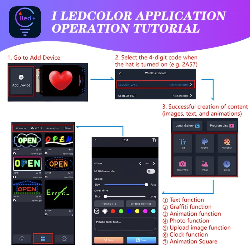 Note: If the boot screen does not light up after unboxing, it is not broken, it is because the LED screen will be automatically protected and shut down when not used for a long time during transportation and storage, please use a USB cable to charge and activate.