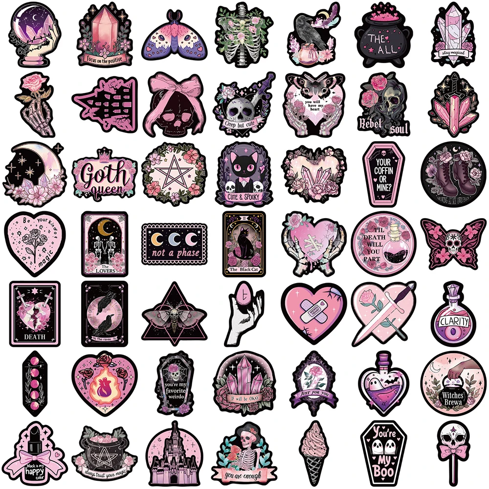 10/30/50PCS Black Pink Gothic Style Magic Witch Cartoon Sticker DIY Phone Laptop Luggage Skateboard Graffiti Decals Fun for Toy