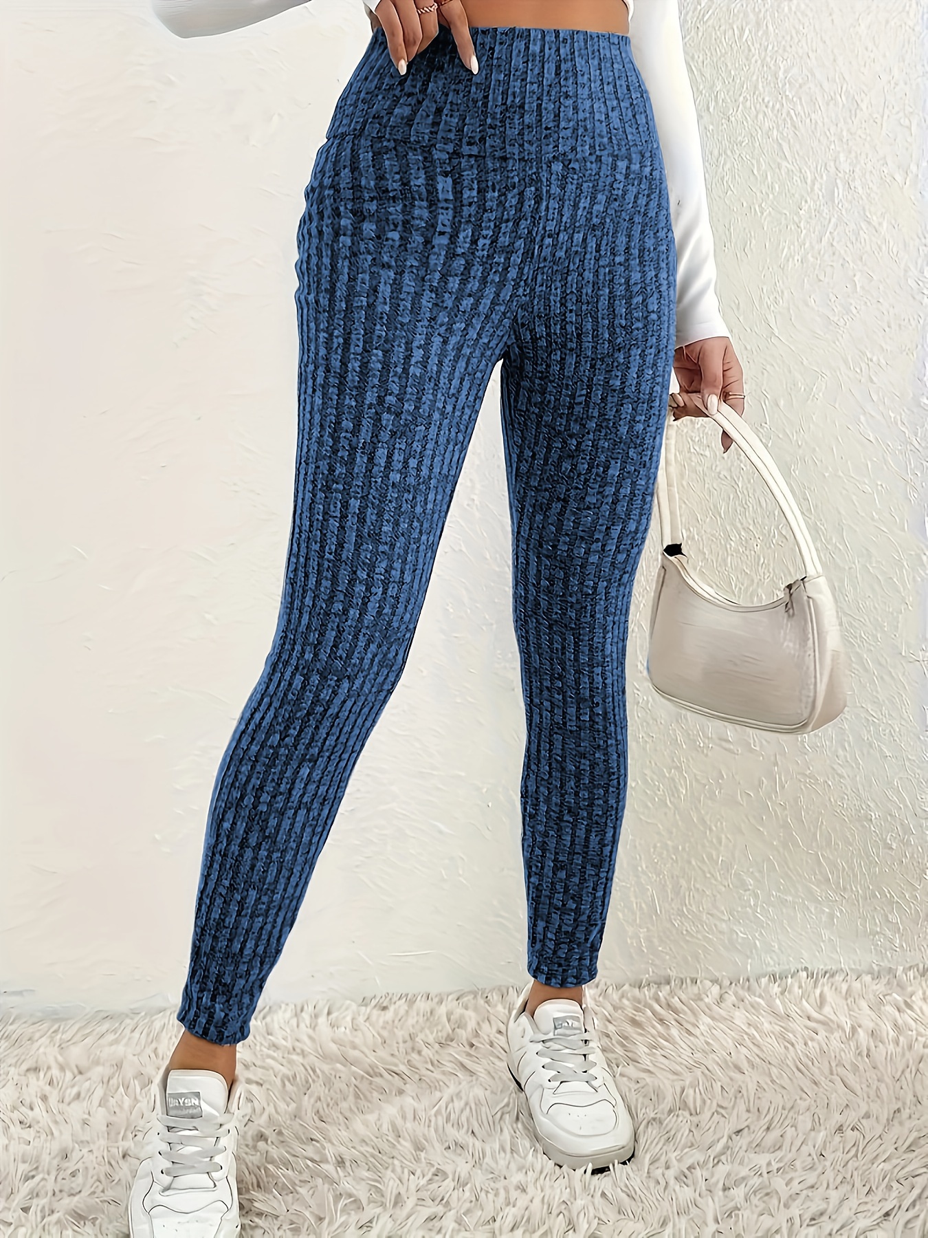 1pc Plus Size High Waist Solid Color Knit Leggings, Casual Stretchy Slimming Tights for Women, Polyester Knitted Fabric, Autumn/Winter Season
