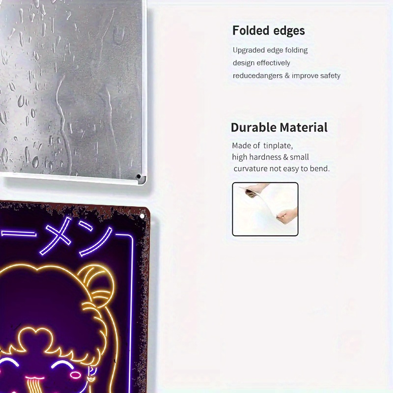 1pc Retro Japanese Ramen Girl Neon Sign - Contemporary Metal Wall Art, Multipurpose Decor for Bar, Cafe, Beach House & Backyard, No Electricity Needed, Easy Mounting, Anime Room Decor