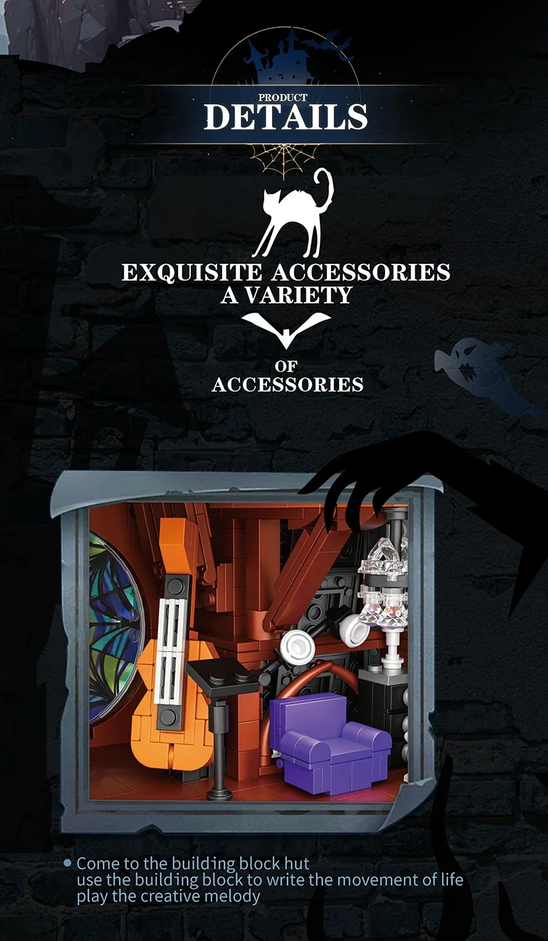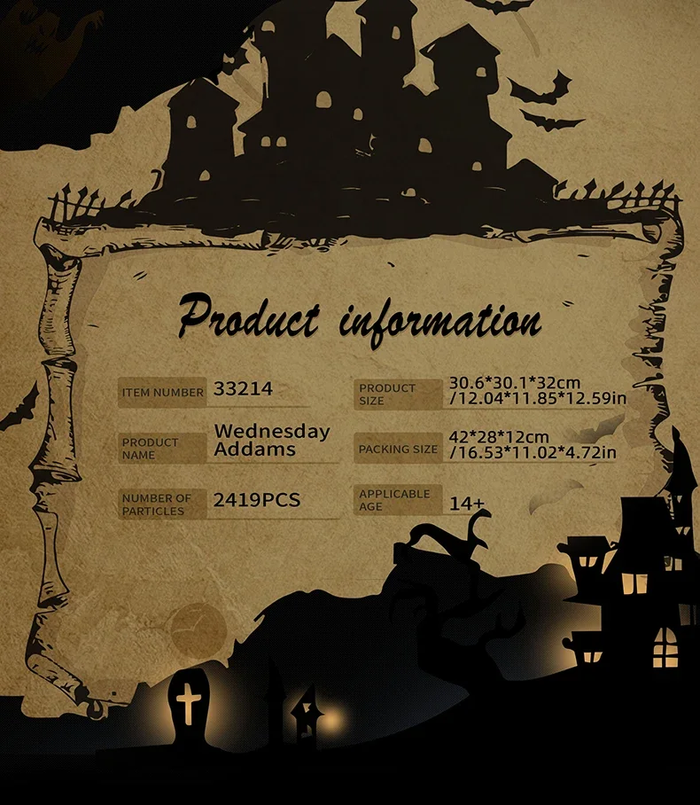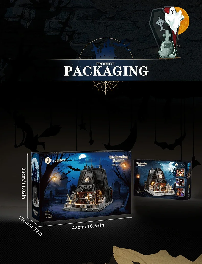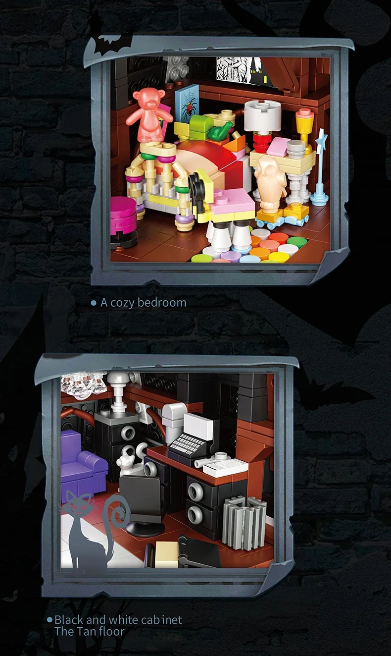 2419PCS Wednesday Adams House Building Blocks Darkness Villa Model Bricks Desktop Decoration Diy Toys For Kids Holiday Gifts