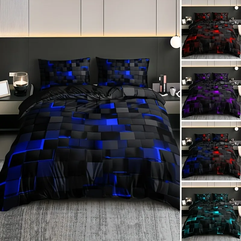 Featuring a cool technology digital print with a patchwork pattern, this set adds a touch of elegance to your bedroom decor.