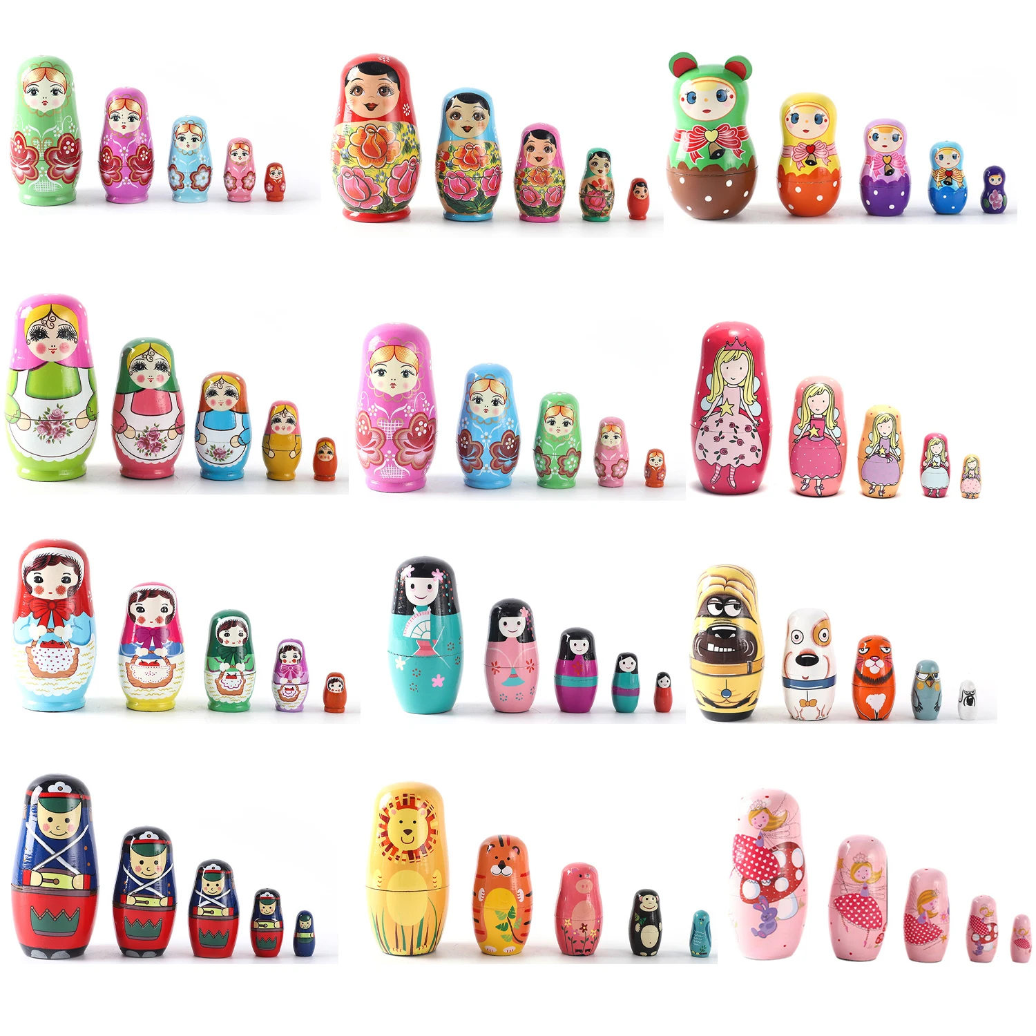 5PCS Montessori Nesting Doll Toy Wooden Russian Matryoshka Doll Hand Paint Toys Craft Toys Home Decoration Kids Christmas Gifts - SS69