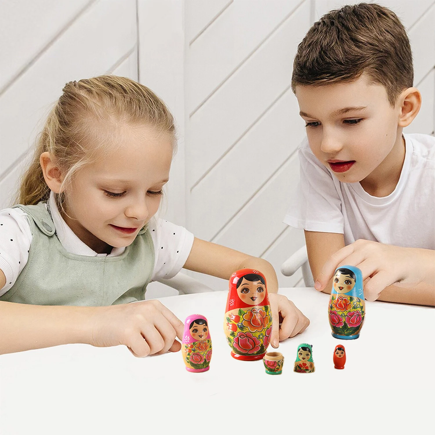 5PCS Montessori Nesting Doll Toy Wooden Russian Matryoshka Doll Hand Paint Toys Craft Toys Home Decoration Kids Christmas Gifts