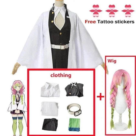 Anime Kanroji Mitsuri Cosplay Costume Kimono Haori Dress Wig Clothes Halloween Costume for Adult Children