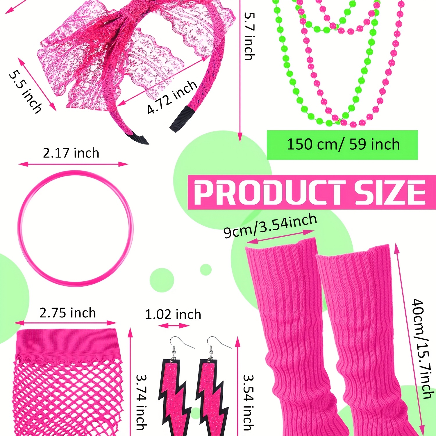 Bracelet Packs 19pcs 80s Costume Set T Shirt Leggings Tutu Skirt Headband Necklace Bracelets Earrings Gloves Leg Warmers For Women (Black Leggings, X-Large)
