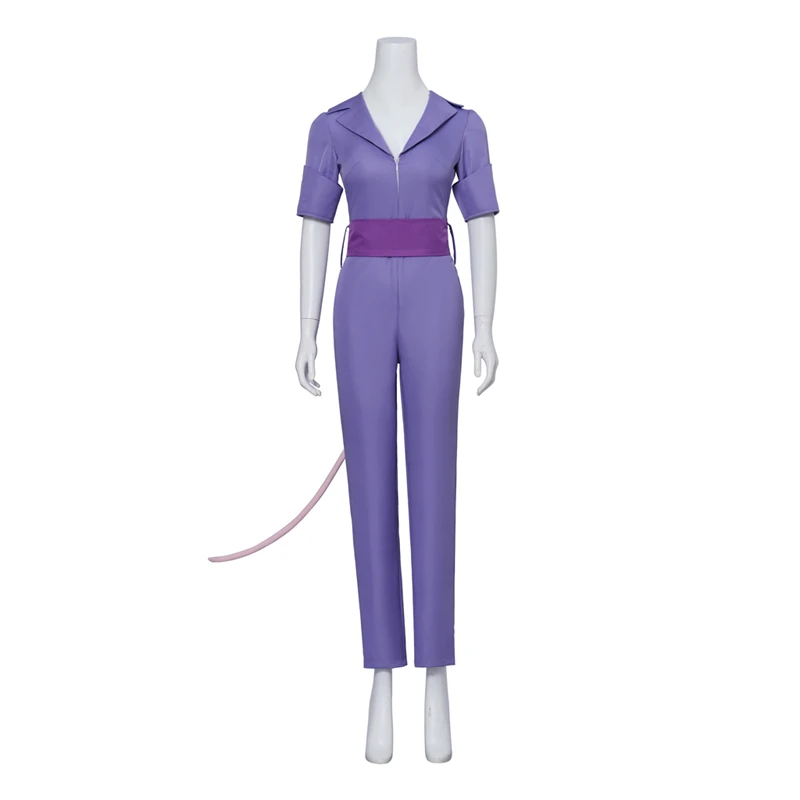 Chip Dale Animation Gadget Hackwrench Cosplay Blue-Magenta Bodysuit with Purple Belt Women's Costume Casual Jumpsuit