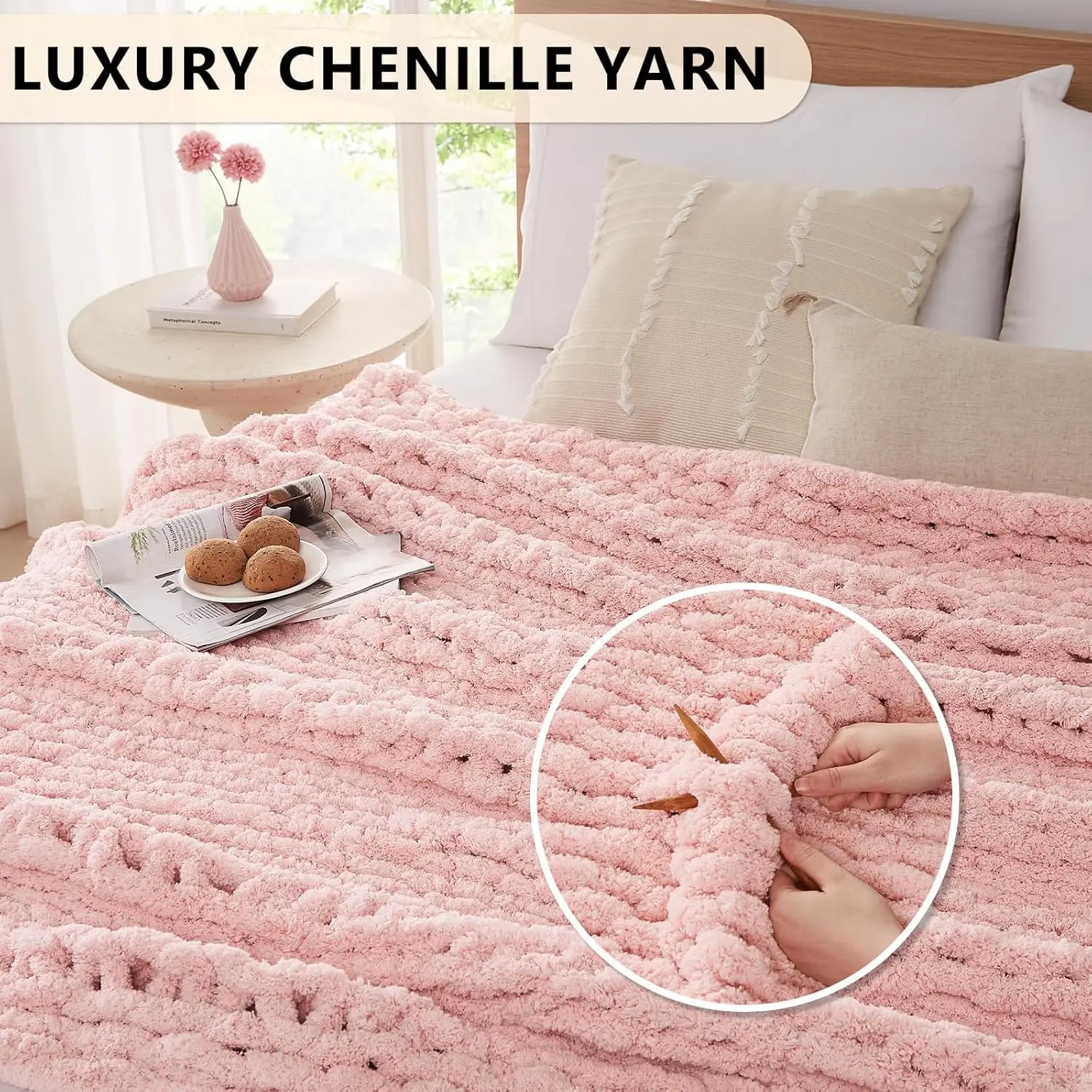 Chunky Knit Blanket Throw Chenille Chunky Knitted Throw Blanket for Bed Couch Handmade Thick Big Cable Knit Blanket