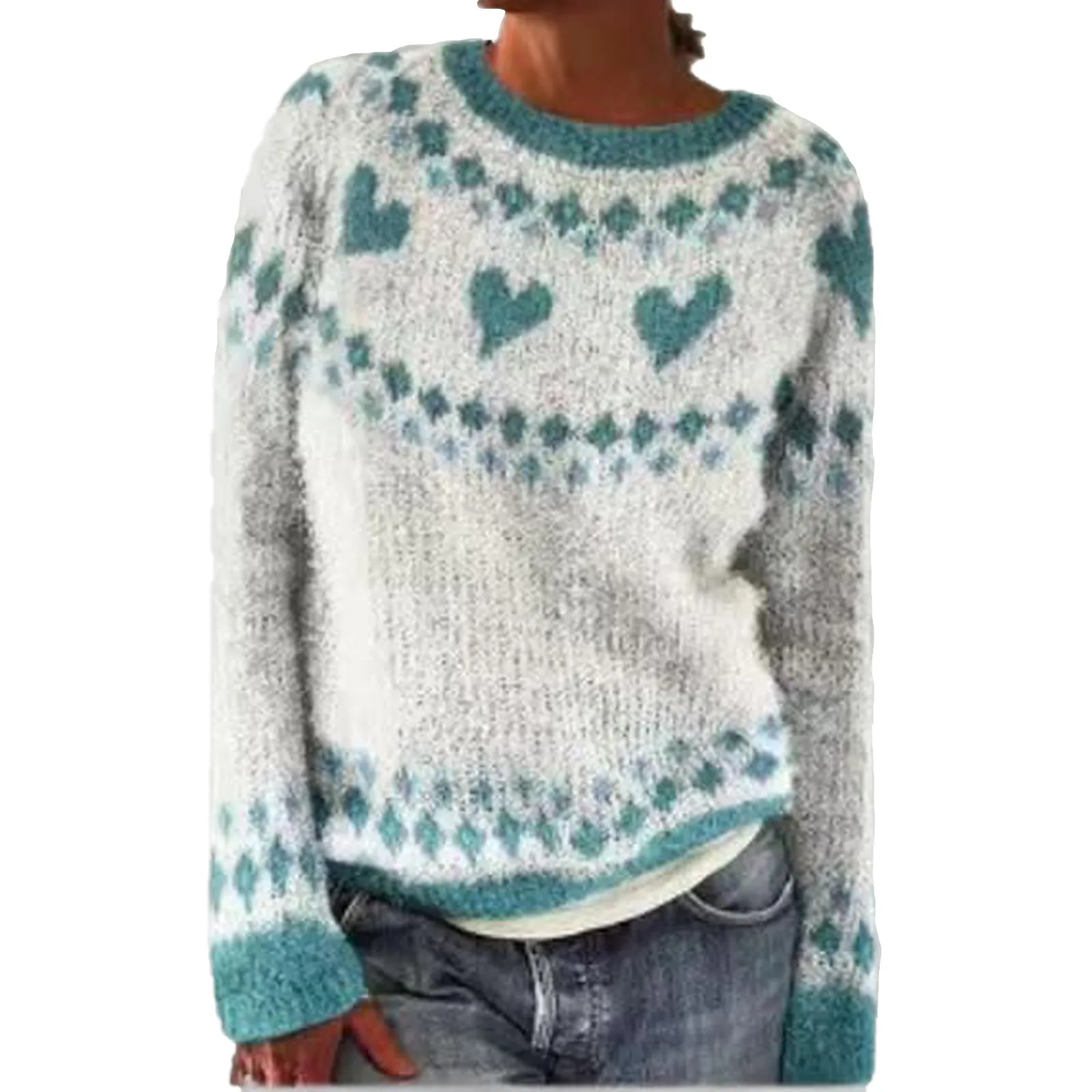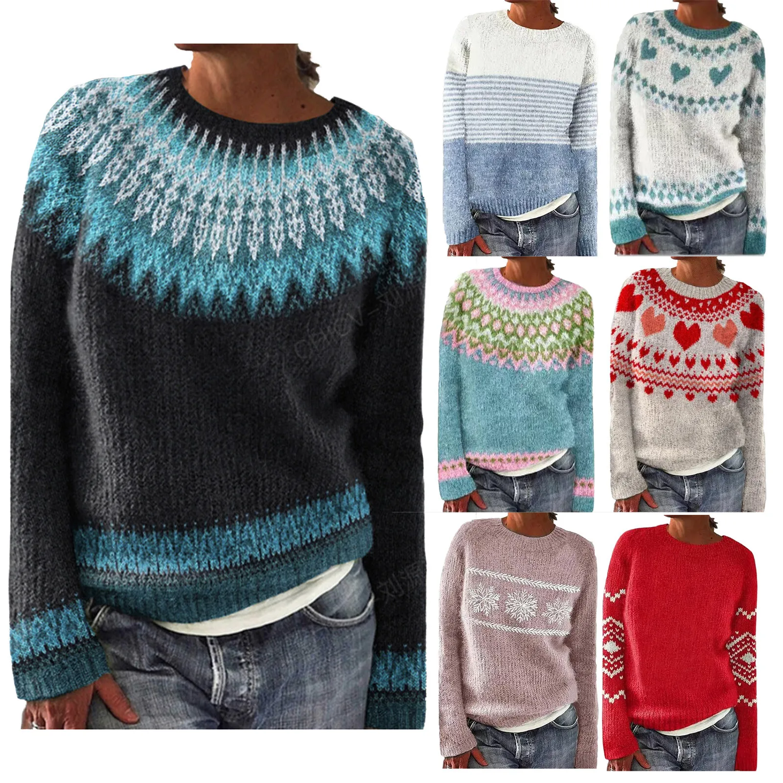 Contrast Color Pullover Sweater For Women Knit Crew Neck Long Sleeve Sweater 2025 Trendy Korean Elegant Knitted Pullover Sweater