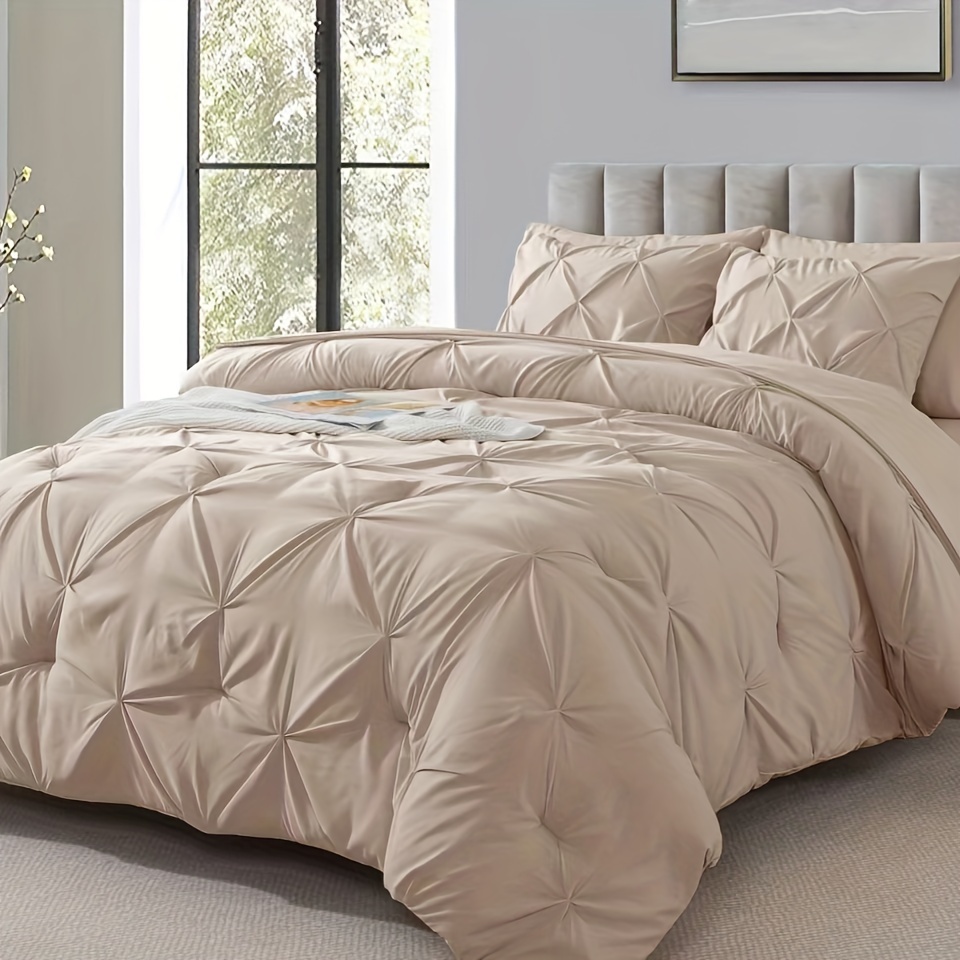 The Cosybay comforter sets, with their delicate pintuck craftsmanship, offer a sophisticated touch to enhance your home environment. The solid color design makes it effortless to complement any style of home decor.