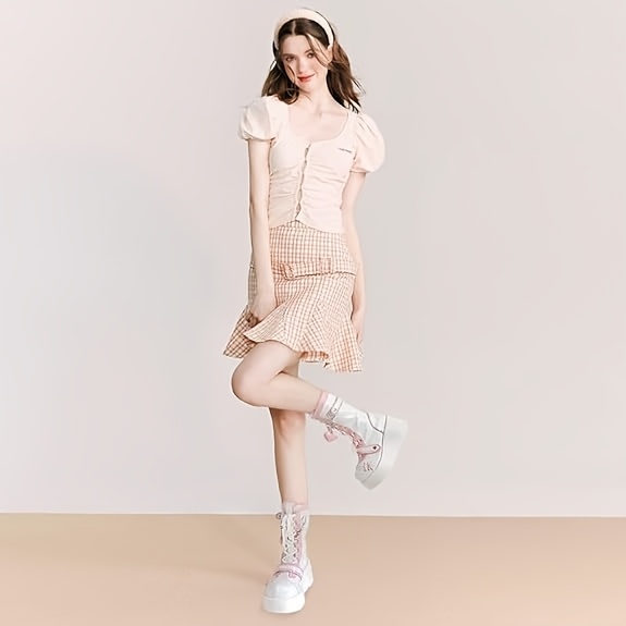 [Goth Rave High Heel Boots] Goth Rave High Heel Round Toe Zipper Wedges Mid Calf Booties - Platform Ankle Boots For Women - Kawaii Shoes SS69 56.69 US 10 / pink