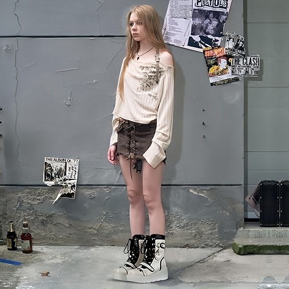 [Goth Rave High Heel Boots] Goth Rave High Heel Round Toe Zipper Wedges Mid Calf Booties - Platform Ankle Boots For Women - Kawaii Shoes SS69 56.69 US 10 / White