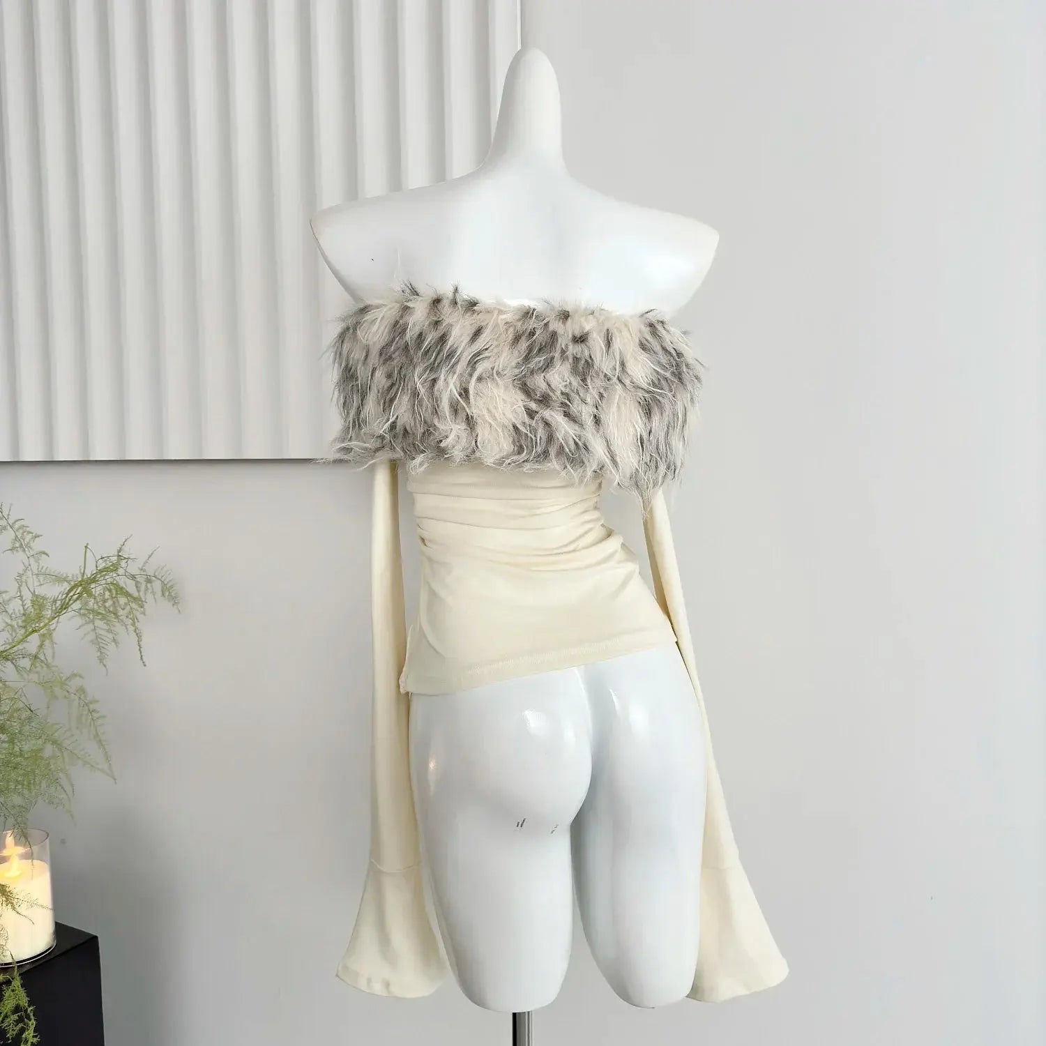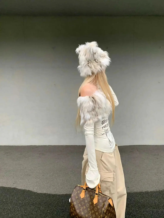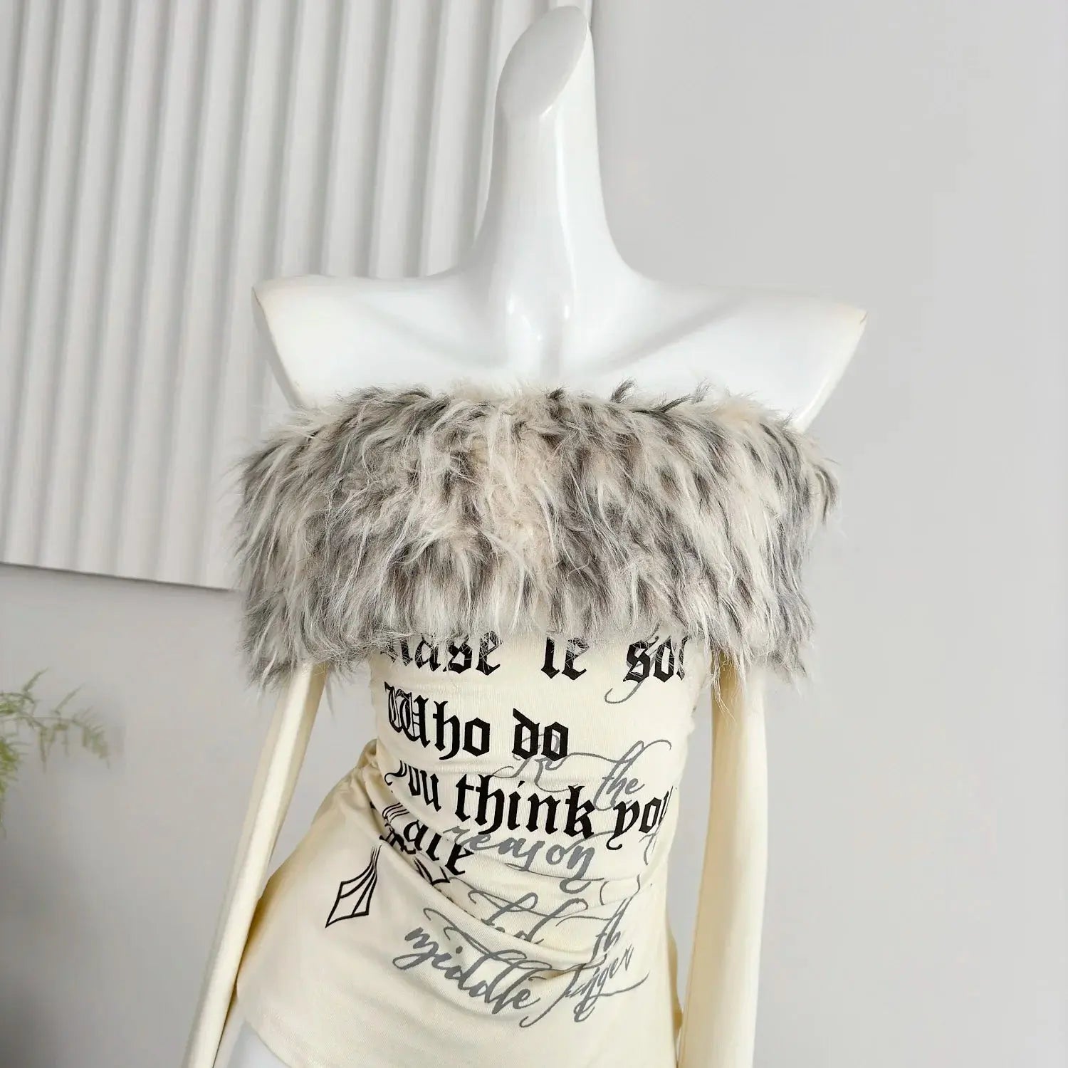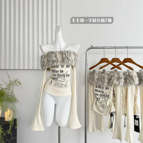 Gyaru Korean Fashion Clothing Autumn and Winter Women's Shoujo Y2k Coquette T-Shirt Slant Neck T-Shirt Long Sleeve Cropped Top SS69