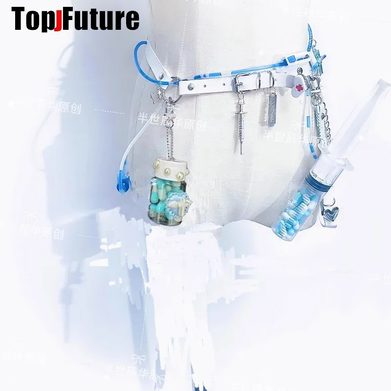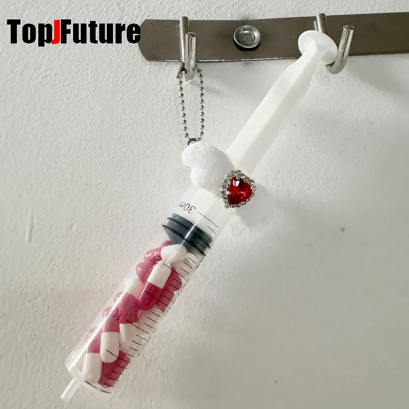 Harajuku Goth Lolita Y2K Girl Blood vessel pendant Halloween cosplay props Syringe Hospital ornament Pill bottle Key Chain