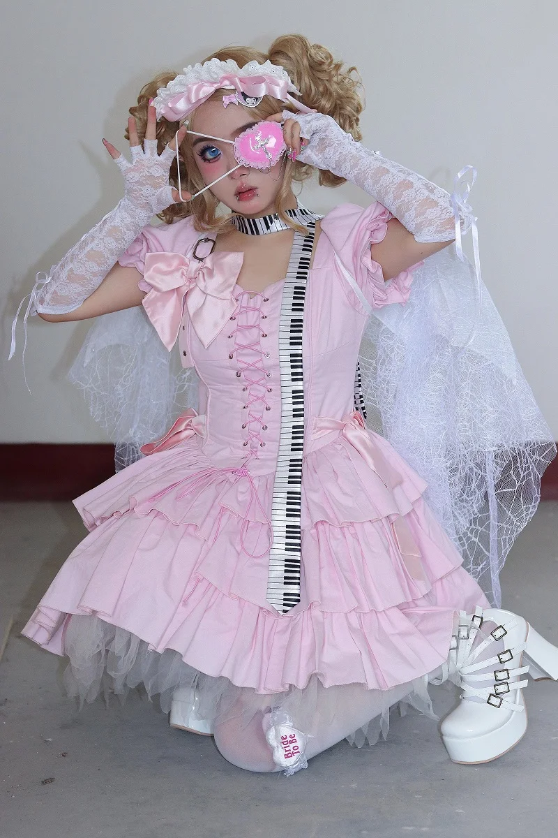 Harajuku Y2k Girls Sweet Pink Cross Lace Eyepatch Japanese Lolita Cosplay Accessory