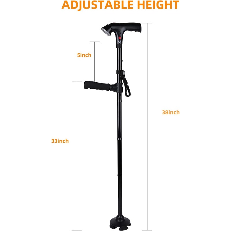s. Use a soft handle handle combined with a convenient wrist strap to provide the best comfort and support, anti-slip, relieve wrist pressure and prevent muscle spasm. This crutch also has an alarm, which can make a sound by pressing the button when the old For Man is in danger, to protect your safety. With LED Light: Adjustable Built-in 4 pcs LED Lights to light up the way when walking at night. The bright lights will safely guide you in dark. The light direction can be adjusted to me