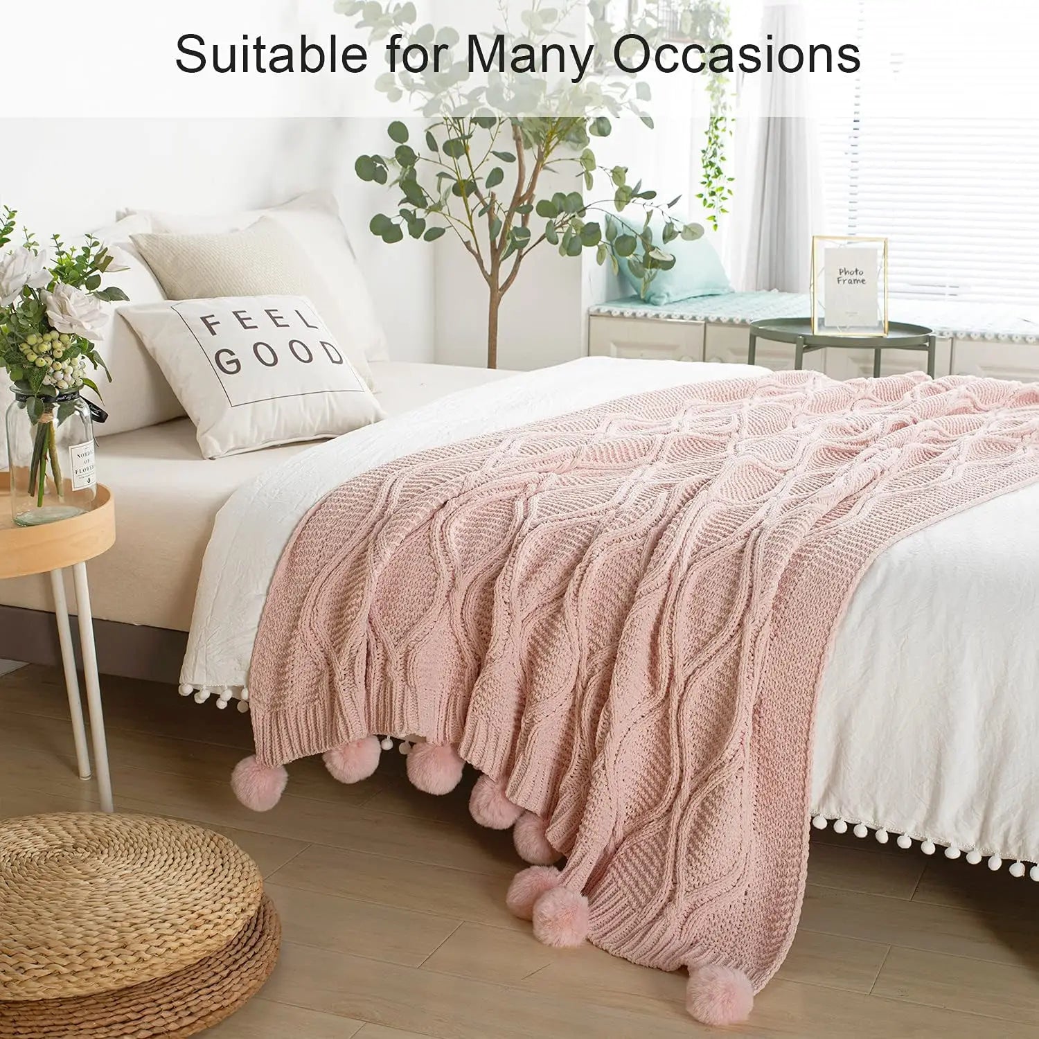 pattern and handmade pom balls, which not only brings comfort, but also provides a unique style for your house