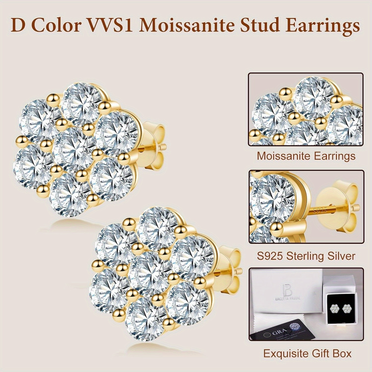 Moissanite Earrings, 4.2 Carat D Color VVS1 Flower Cut Diamond Moissanite Earrings, 925 Sterling Silvery Earrings, 18K White Gold Plated Fine Jewelry Earrings SS69 1927.69 Yellow / 4.2ct*2