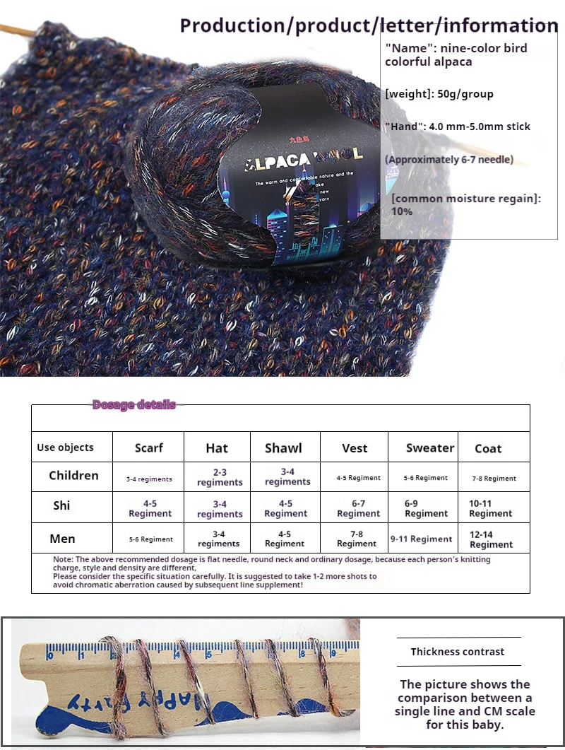 Nine-colored Bird, Seven-colored Alpaca Wool Self-knitting Scarf, Yarn Ball, Handmade Knitting, DIY Medium-thick Sweater and Coa
