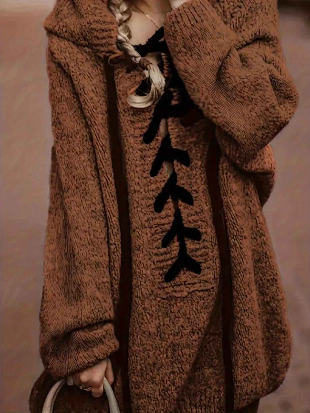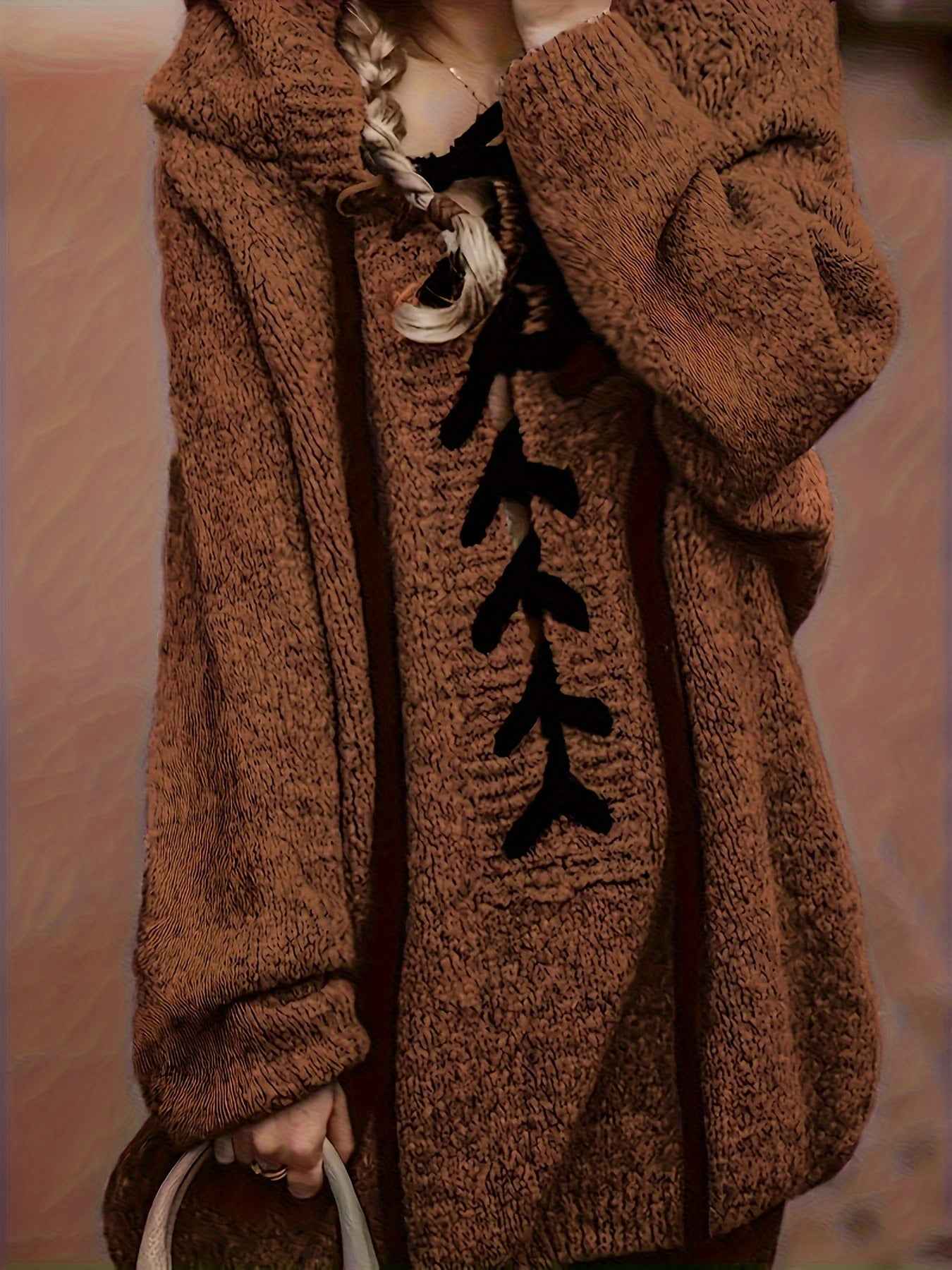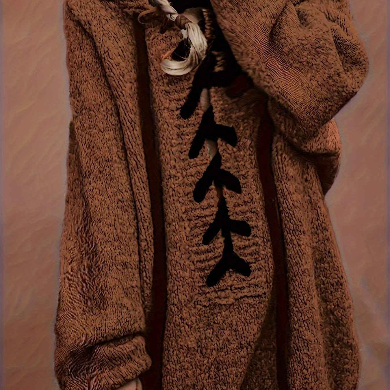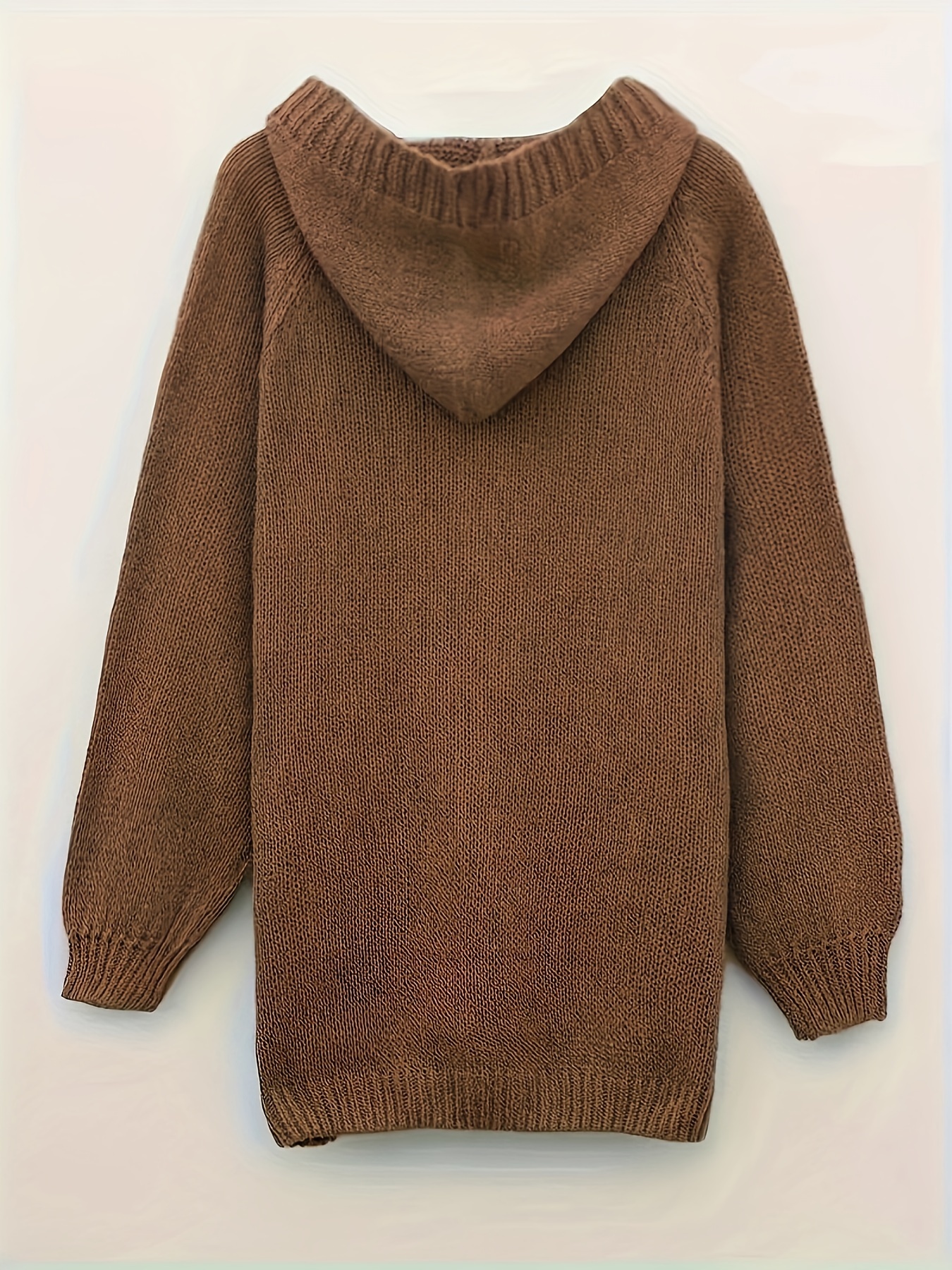 Plus Size, Plus-Size Women's Elegant Hooded Sweater - Long Sleeve Pullover with Adjustable Drawstring Hood, Soft Stretchy Fabric, Machine Washable, Solid Color Casual Winter Fall Tops, Sweater Hoodie, Autumn Apparel, Minimali