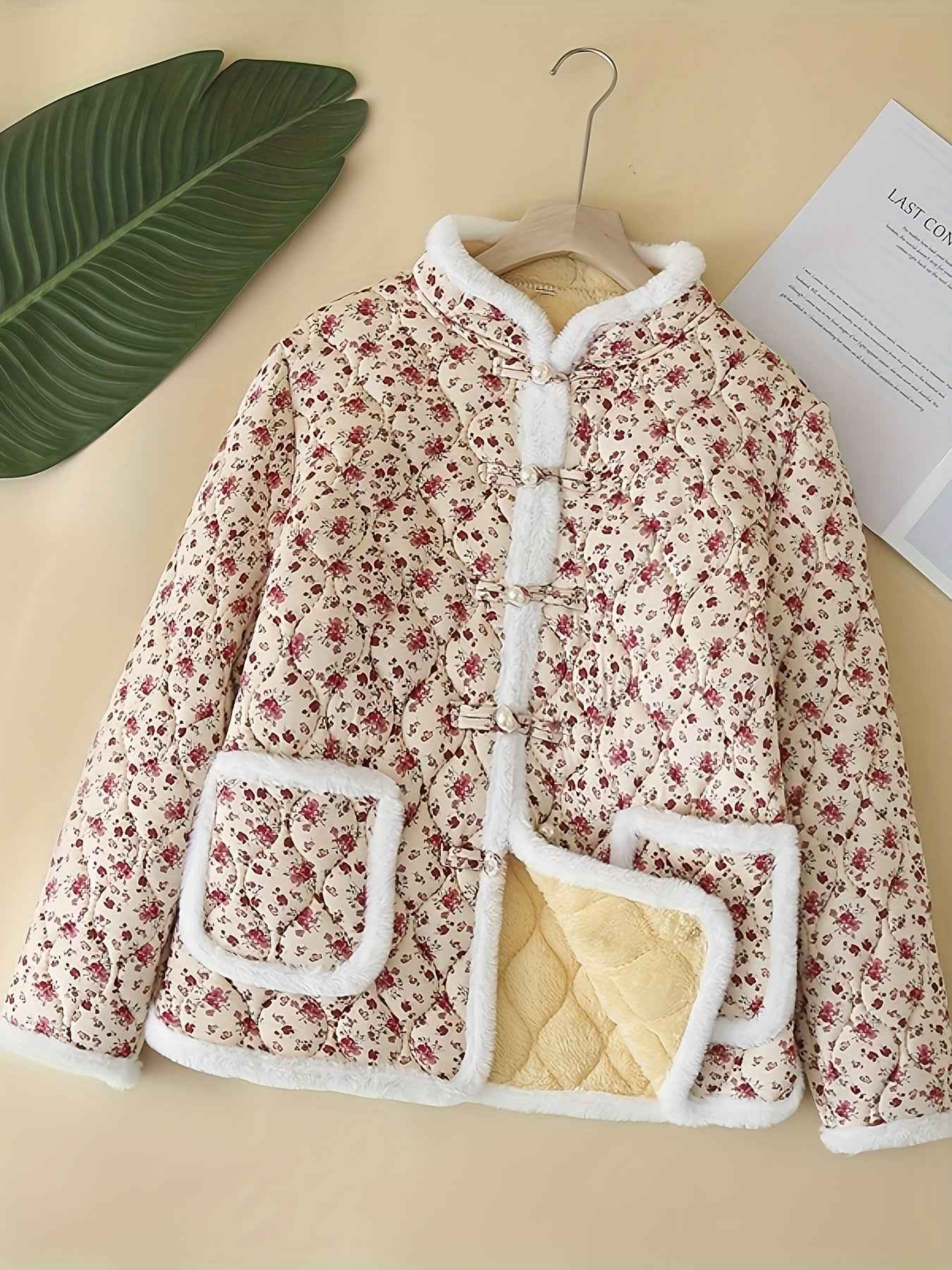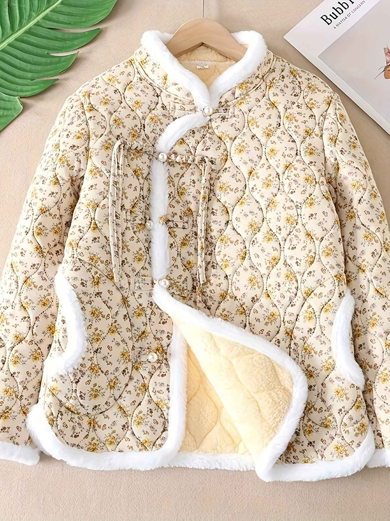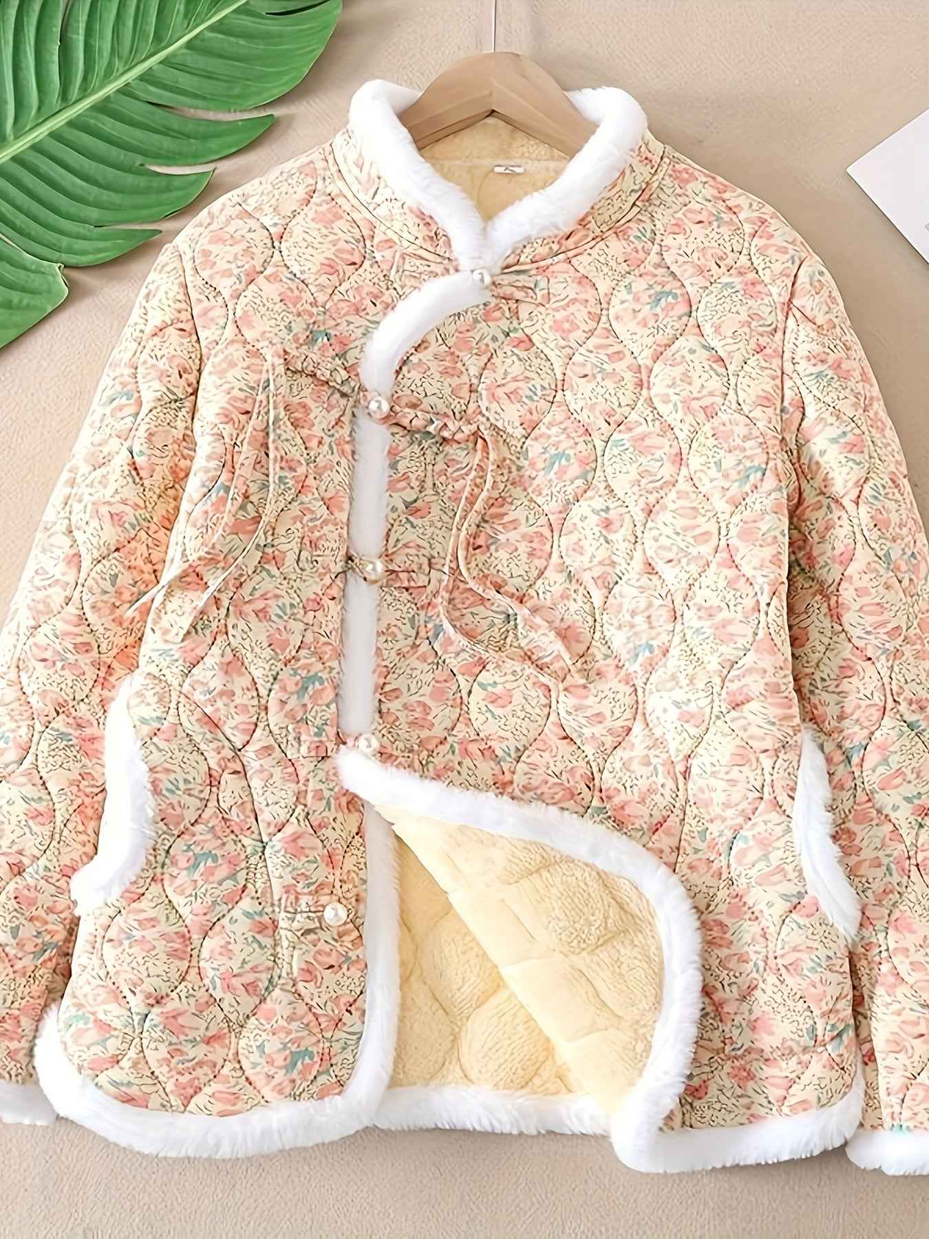 Plus Size, Women's Chinese Style Winter Coat with Cheona Collar (Standing Pronunciation) - Thick Padded Warm Jacket, Retro Button Front, Zipper Back Closure, Machine Washable Outerwear