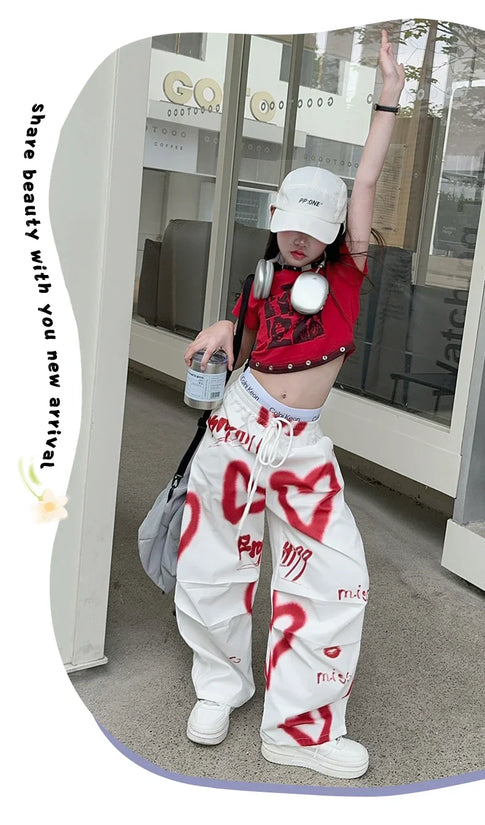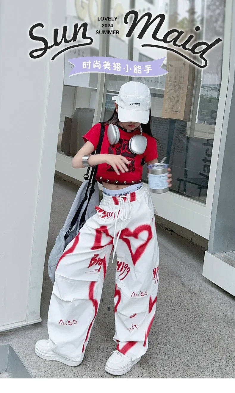 summer junior Girls Love Graffiti Casual Pants teenager girl Casual Hip Hop cargo pants kids Dance pants children clothes