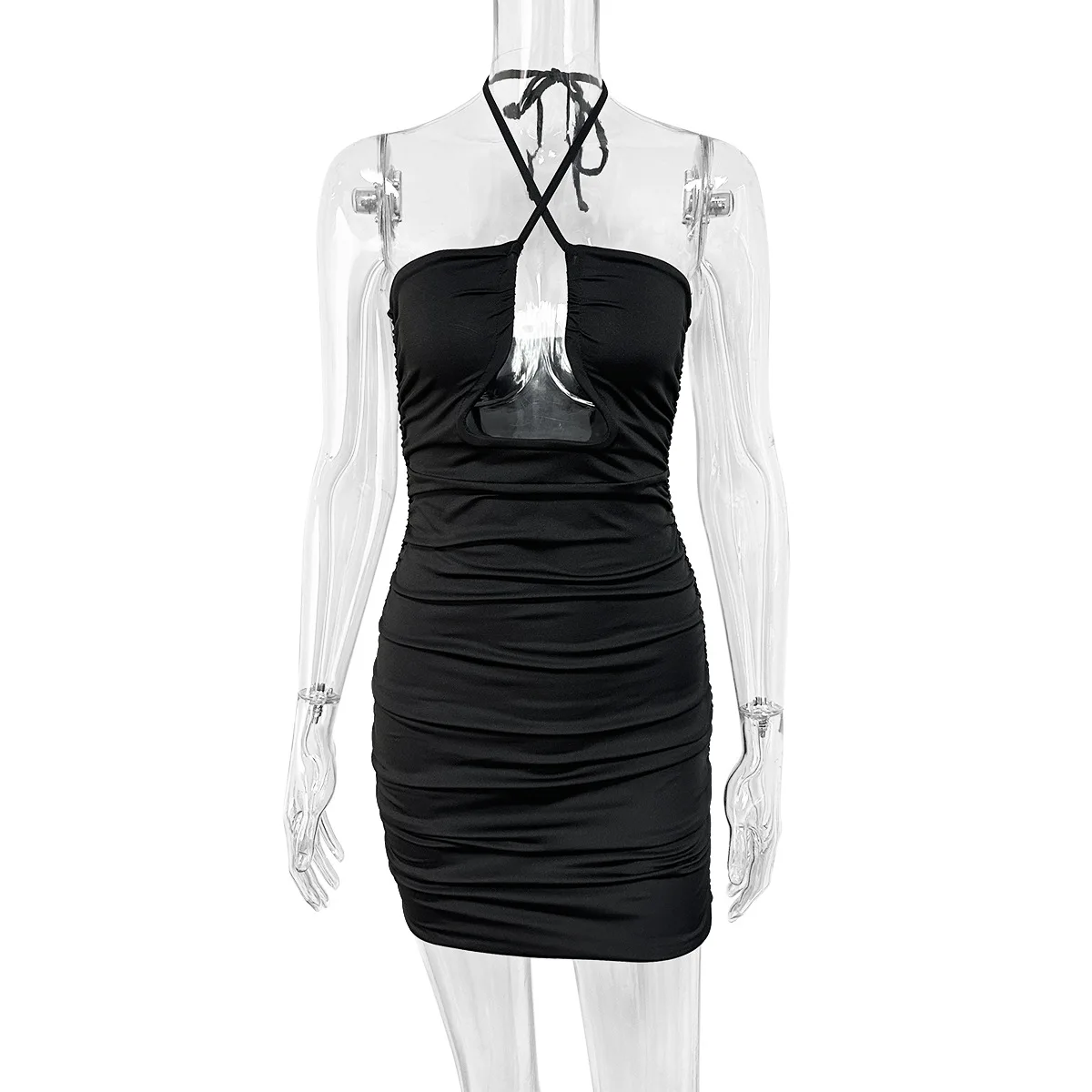 Summer Sexy Neck Lace-up Dress New Fishbone Hollow Pleated Suspender Mini Women Party Dresses Plus Size 9XL 8XL 7XL 6XL XXXXXL