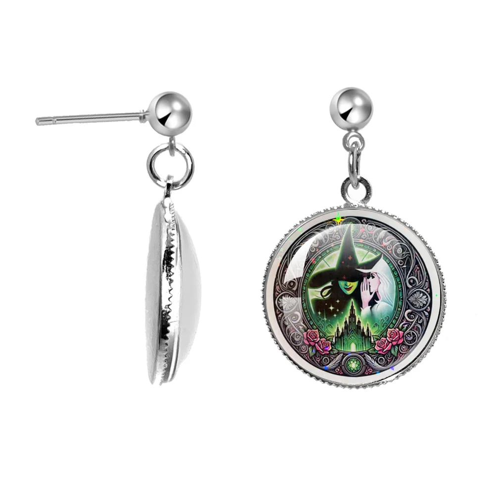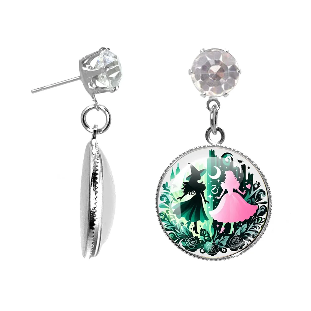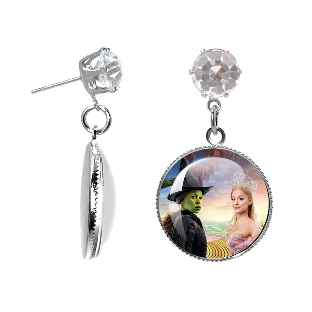 The Movie Wicked Elphaba&Linda Cosplay 20MM Glass Cabochon Earrings Jewelry Accessories Earring Jewelry Gift for Couple