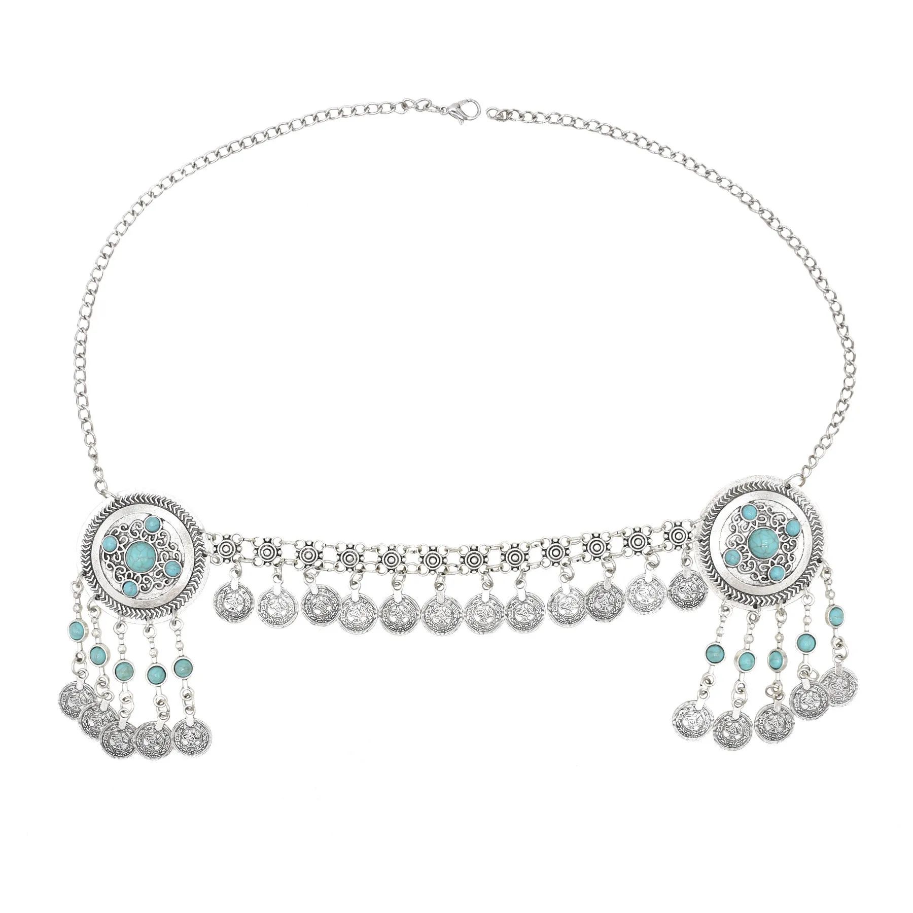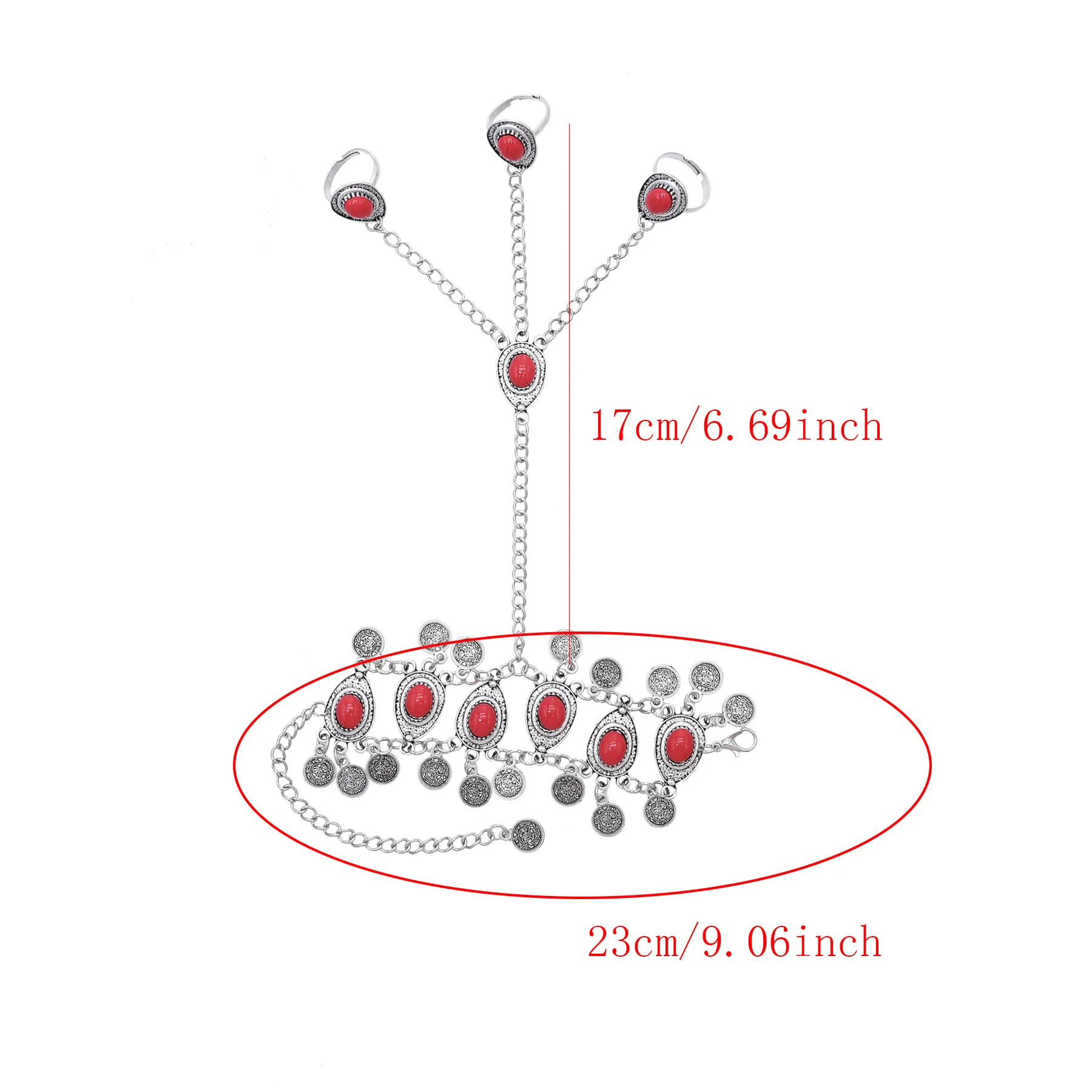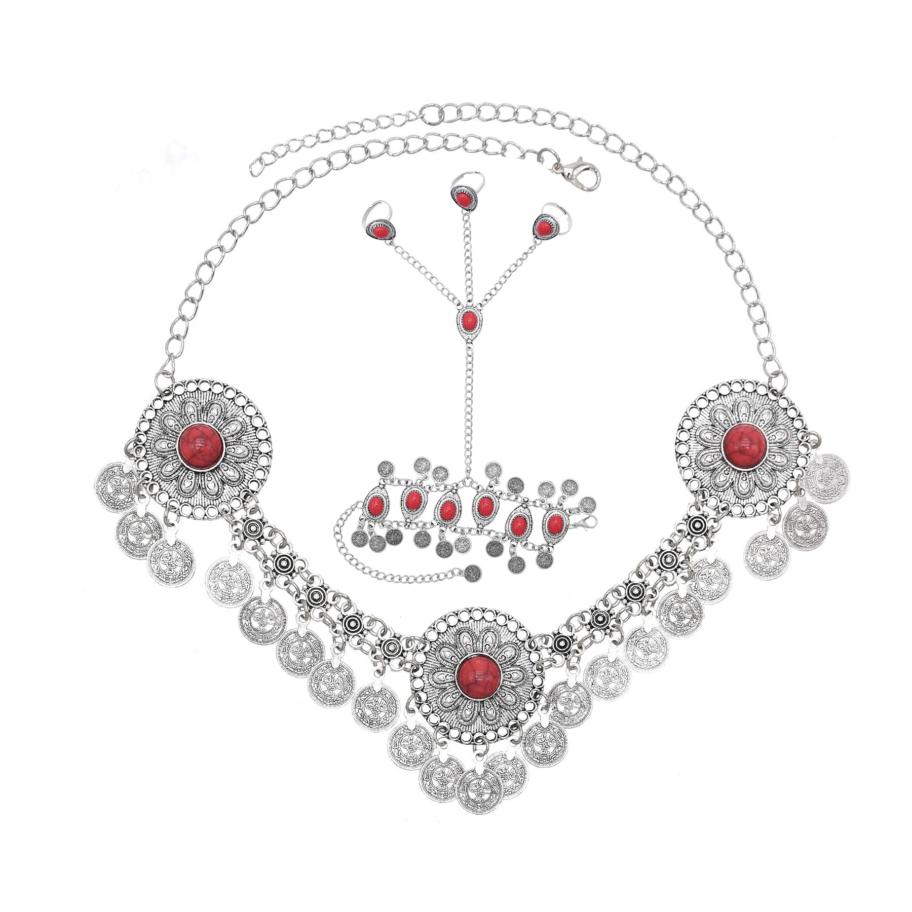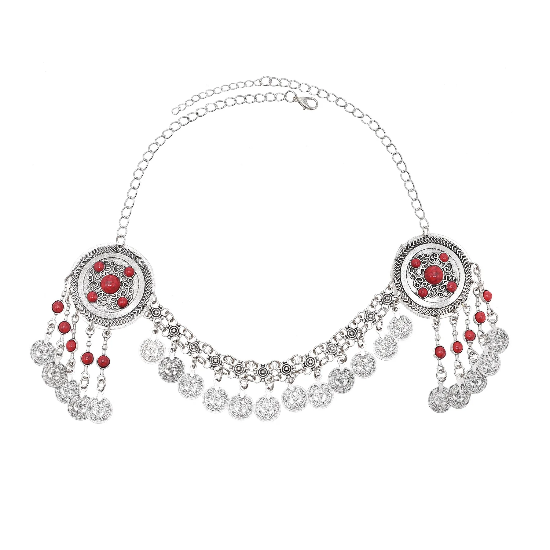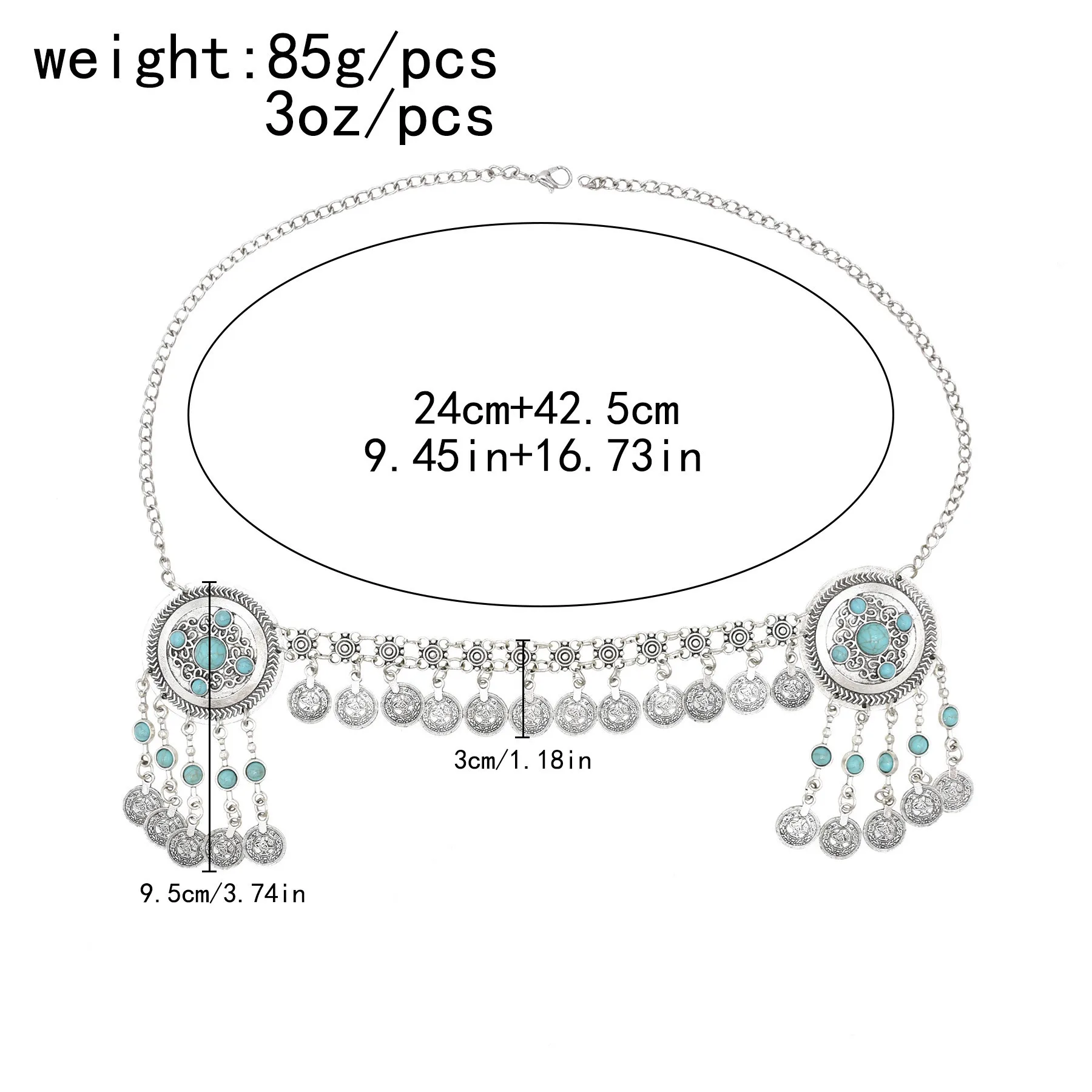 Product:Traditional Kazakhstan Ethnic Coins Bracelet Hair Accessories for Women Vintage Nepalese Tibetan Clothing Headwear Jewelry Set
