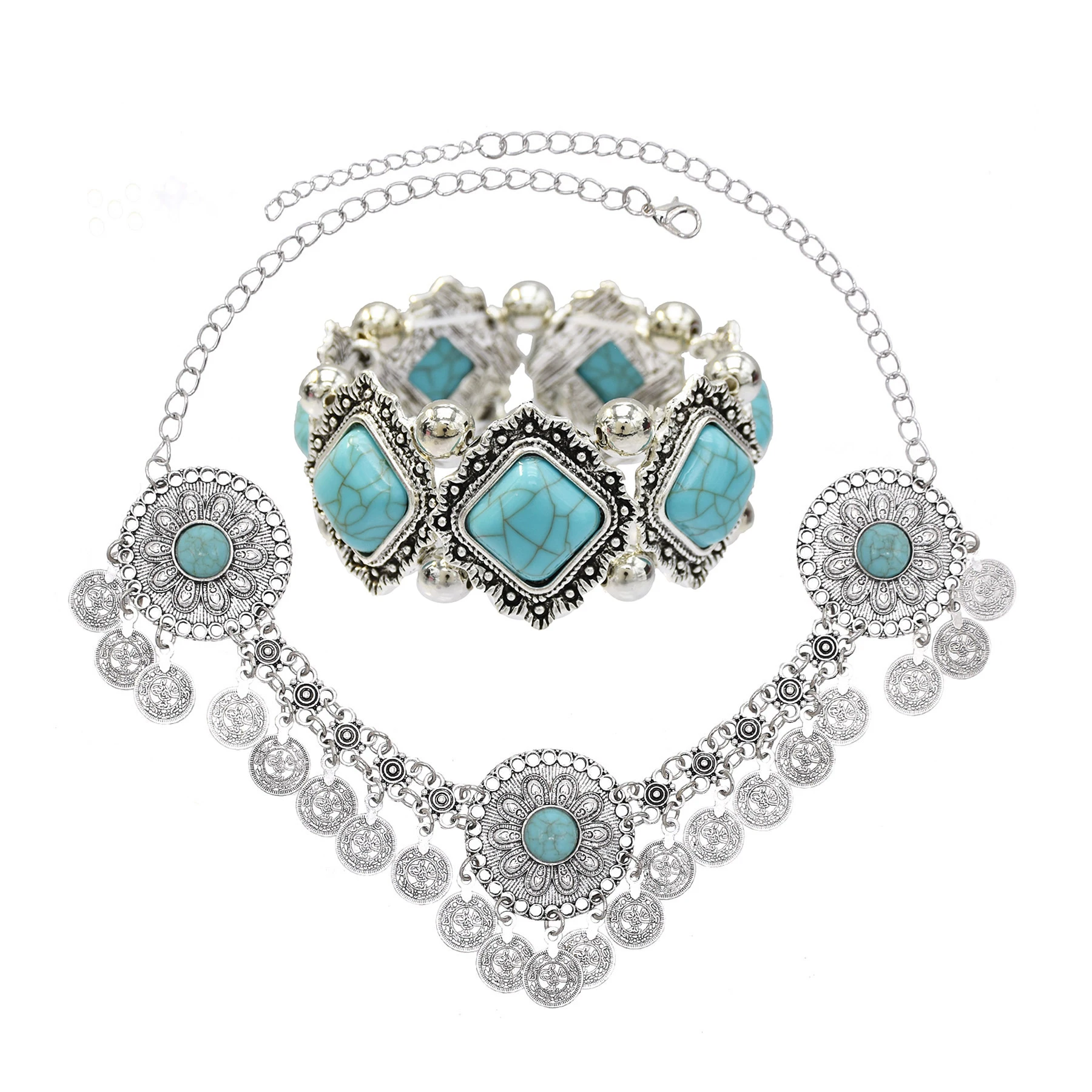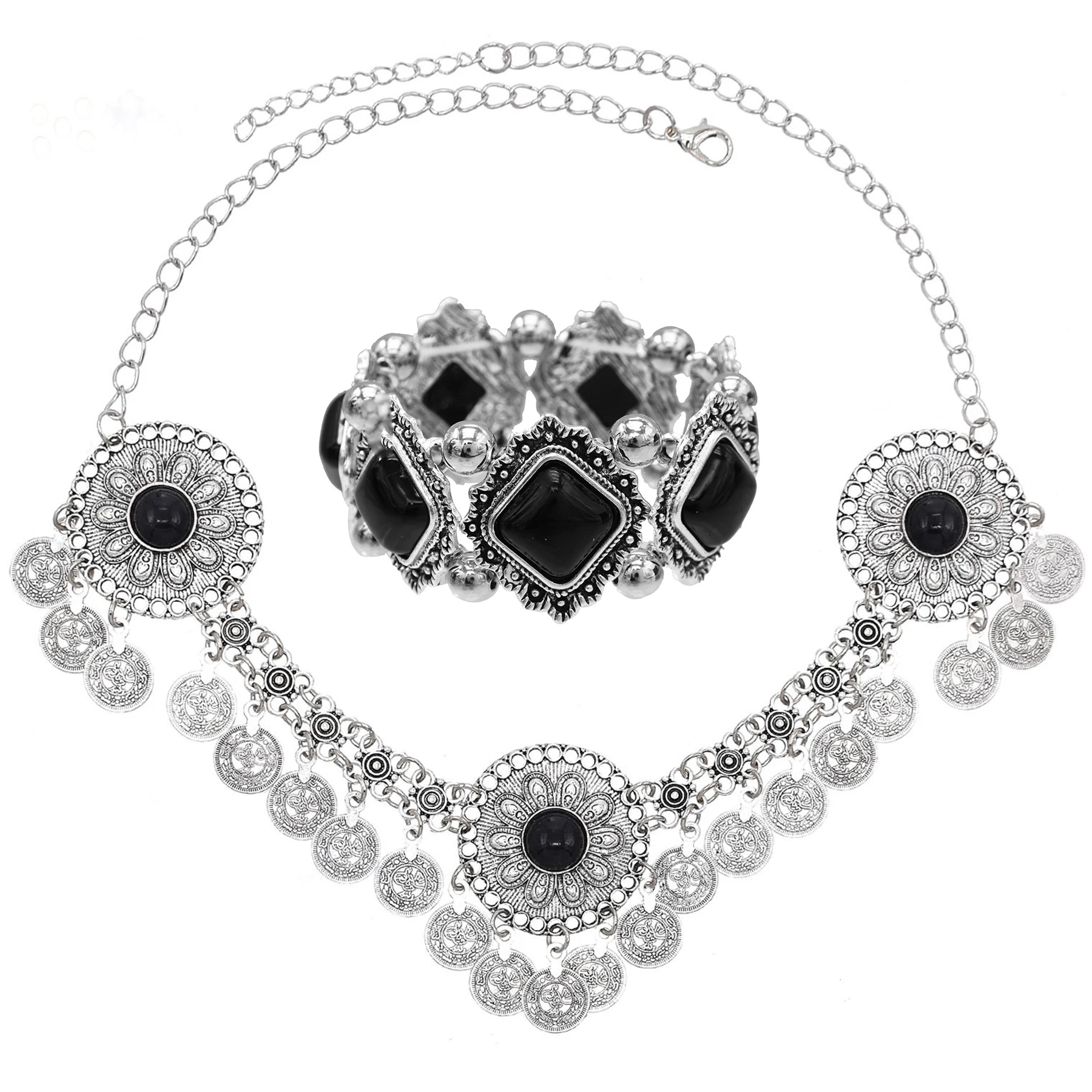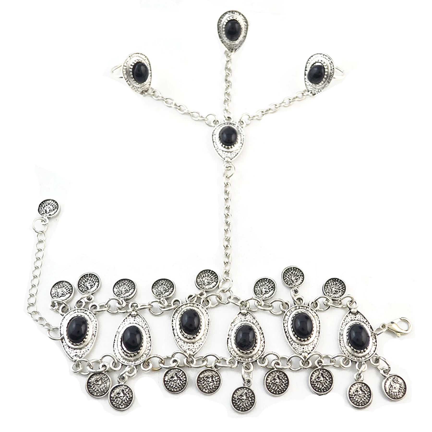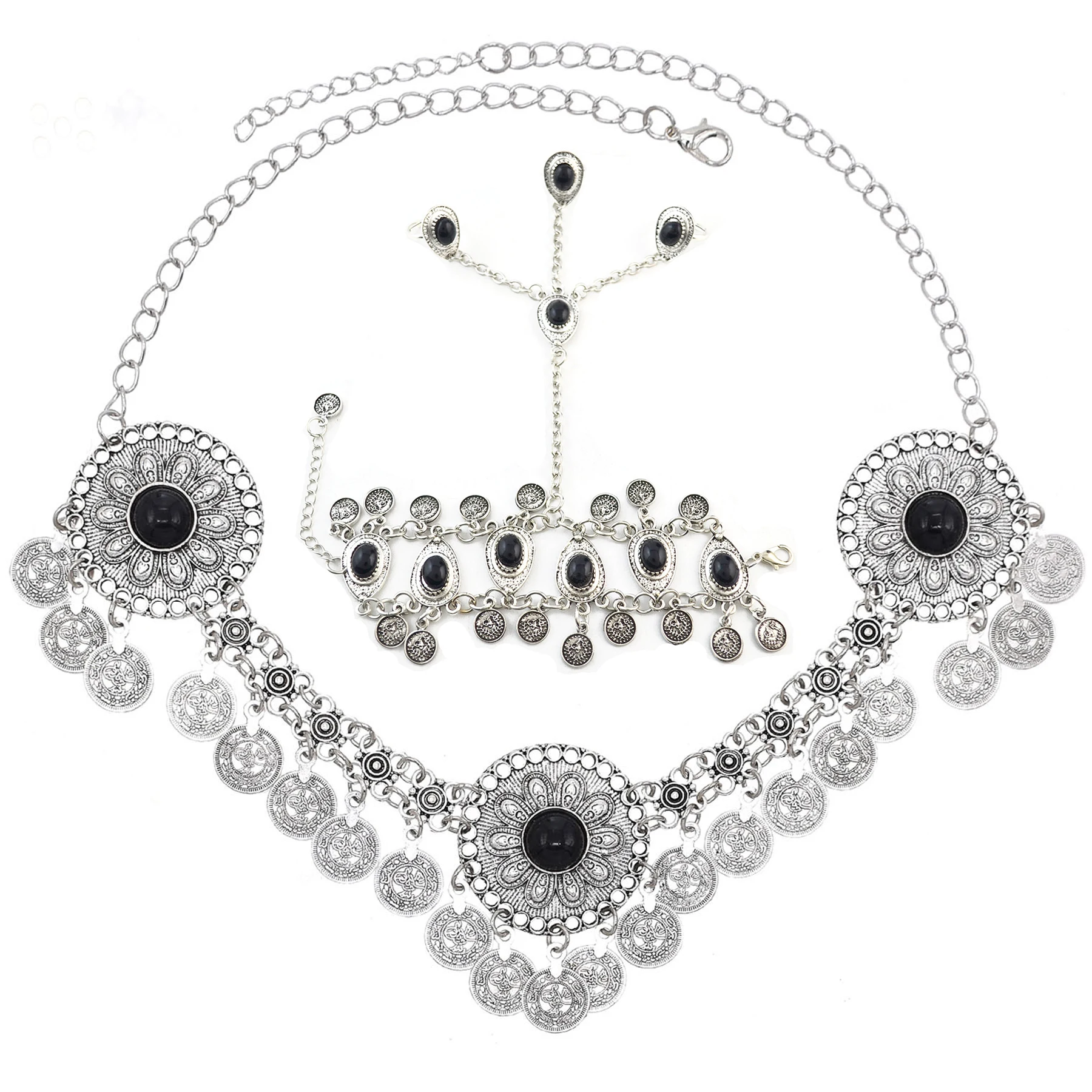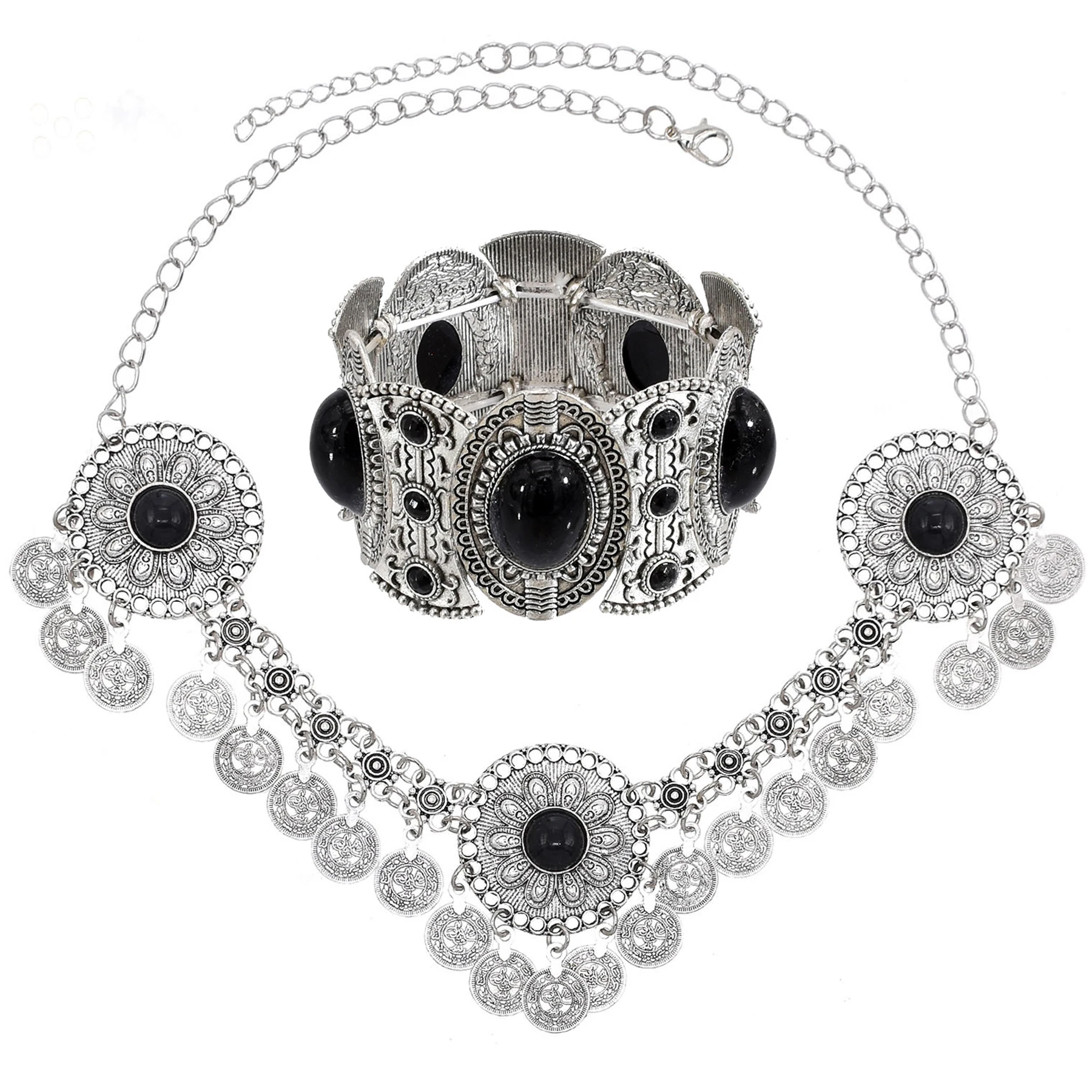 Product:Traditional Kazakhstan Ethnic Coins Bracelet Hair Accessories for Women Vintage Nepalese Tibetan Clothing Headwear Jewelry Set