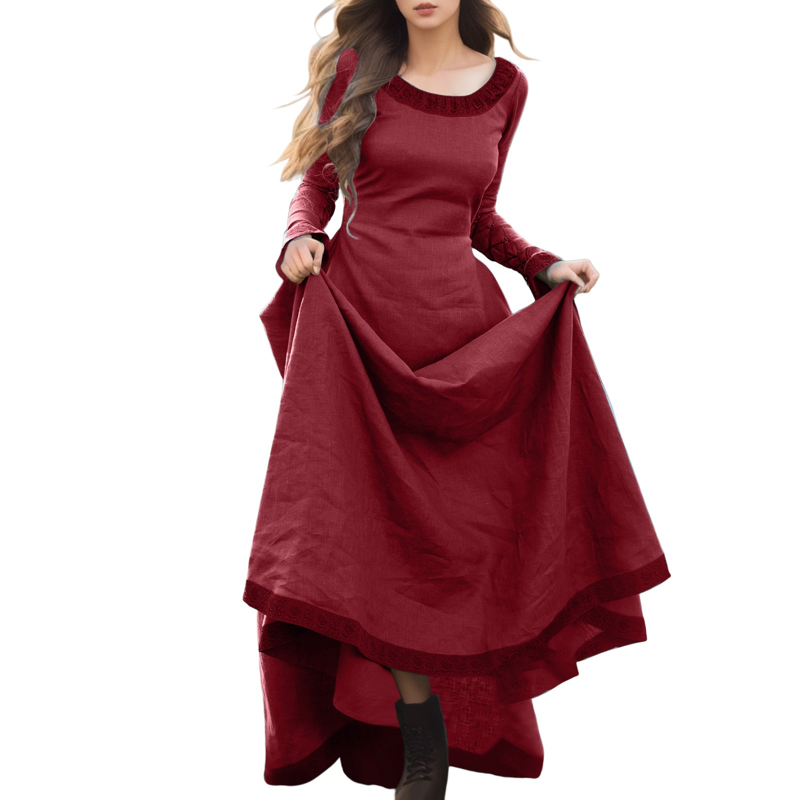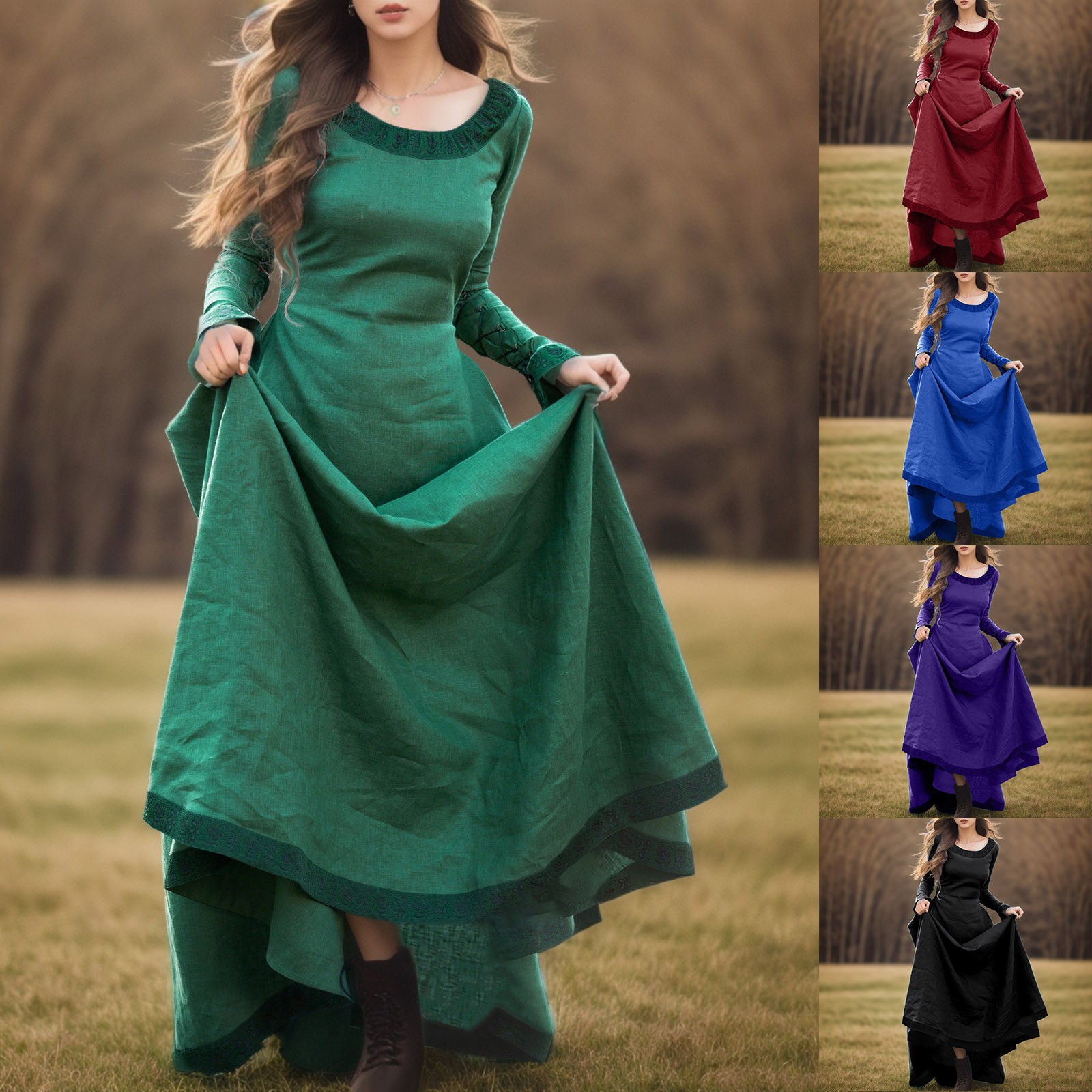 Vintage Long Medieval Dresses For Women Retro A Line Panel Women Maxi Dress Long Sleeve O-Neck Summer Dresses For Women Vestidos
