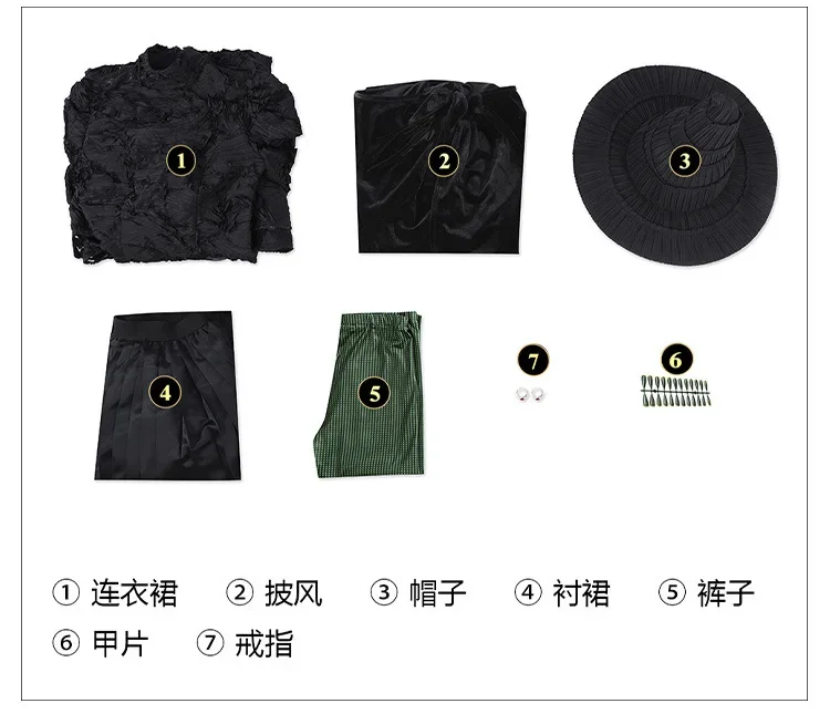 Full set Components:1. Hat 2. Dress 3. Mantle 4. Petticoat 5. Trousers 6. Ring 7. Nail plate
