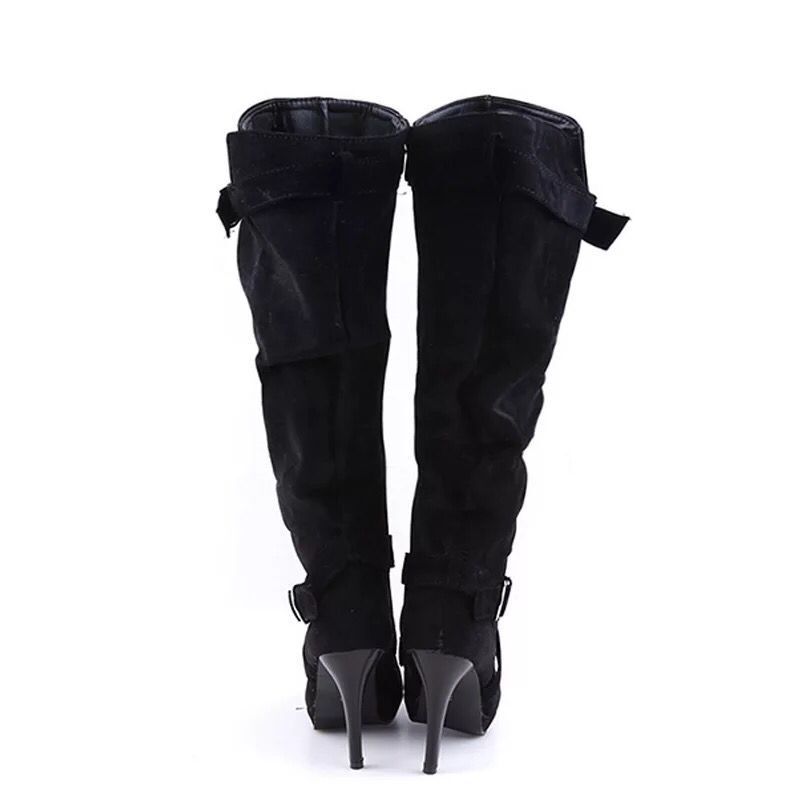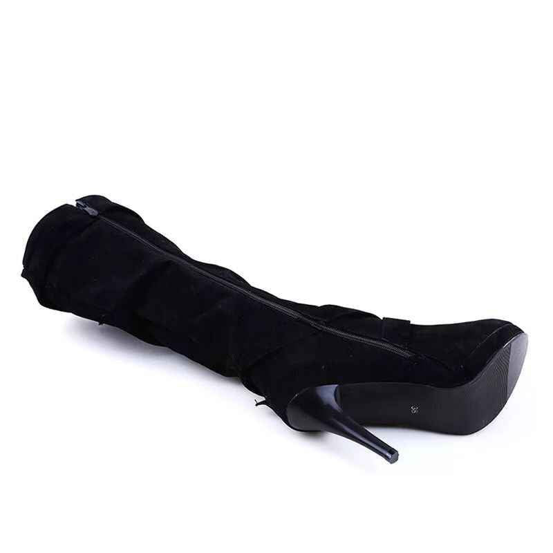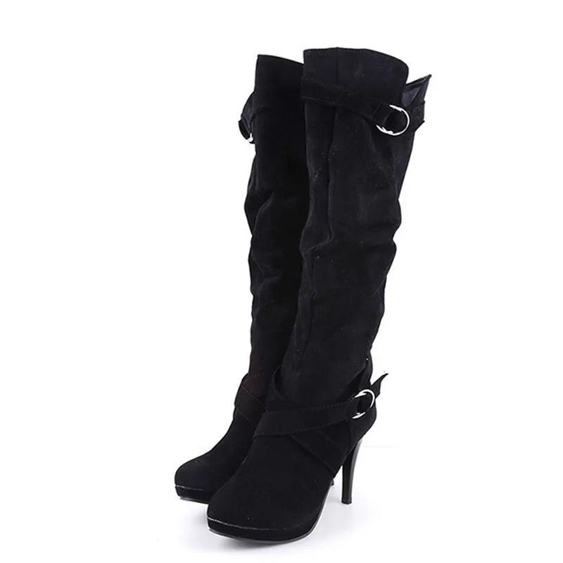 Women's Plus Size Knee-High Stiletto High-Heeled Boots, European-Inspired Round Toe with Zipper Closure, Stretch Comfort Fit and Slip-Resistant MD Sole, Elegant All-Season Booties for Casual & Formal Events, Brown, Grey, Hand
